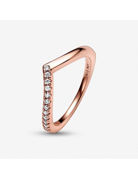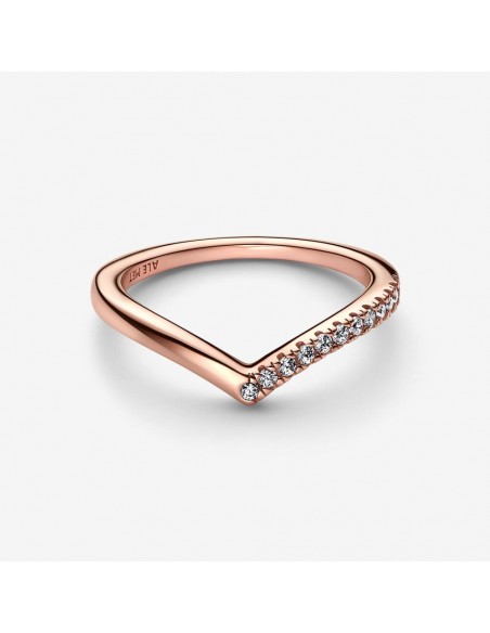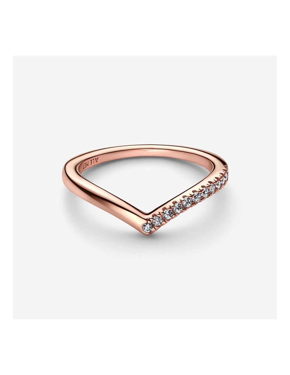 Realizza tutti i tuoi desideri con questo delicato anello della collezione Timeless, decorato da 12 pietre di zirconia cubica rotonde taglio brillante incastonate a griffe su su un quarto della fascia nell'esclusiva lega metallica placcata oro rosa 14k. Semplice ma elegante, questo luminoso anello pu essere indossato da solo come elemento centrale del look oppure abbinato ad altri anelli Pandora per creare uno stile unico e personale.