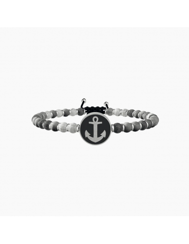 I valori di un vero uomo sono un punto fermo in mezzo all'oceano che nessuna marea potrˆ mai spostare. Bracciale con sfere in agata grigia e piastra tonda Ancora in acciaio di colore nero.
