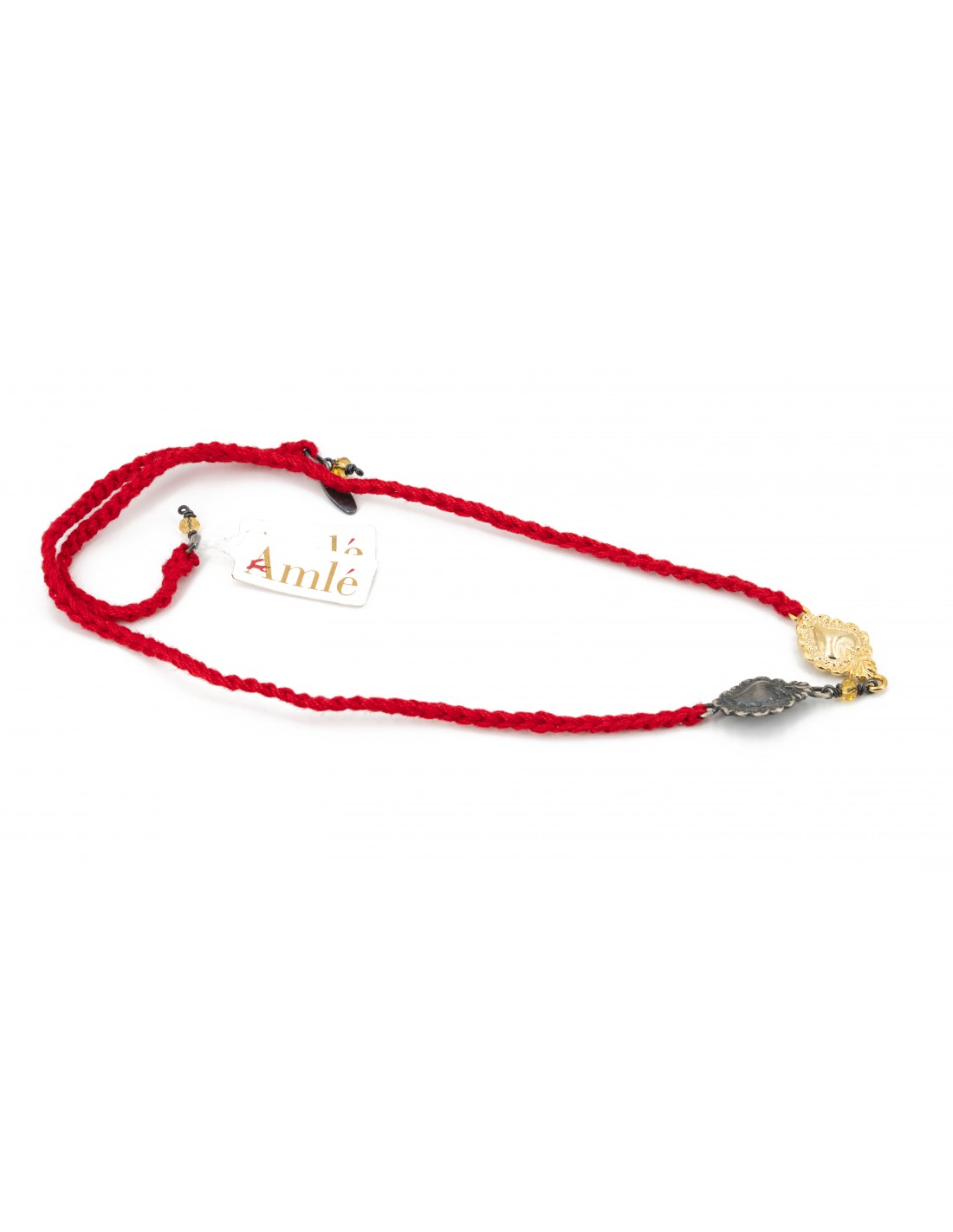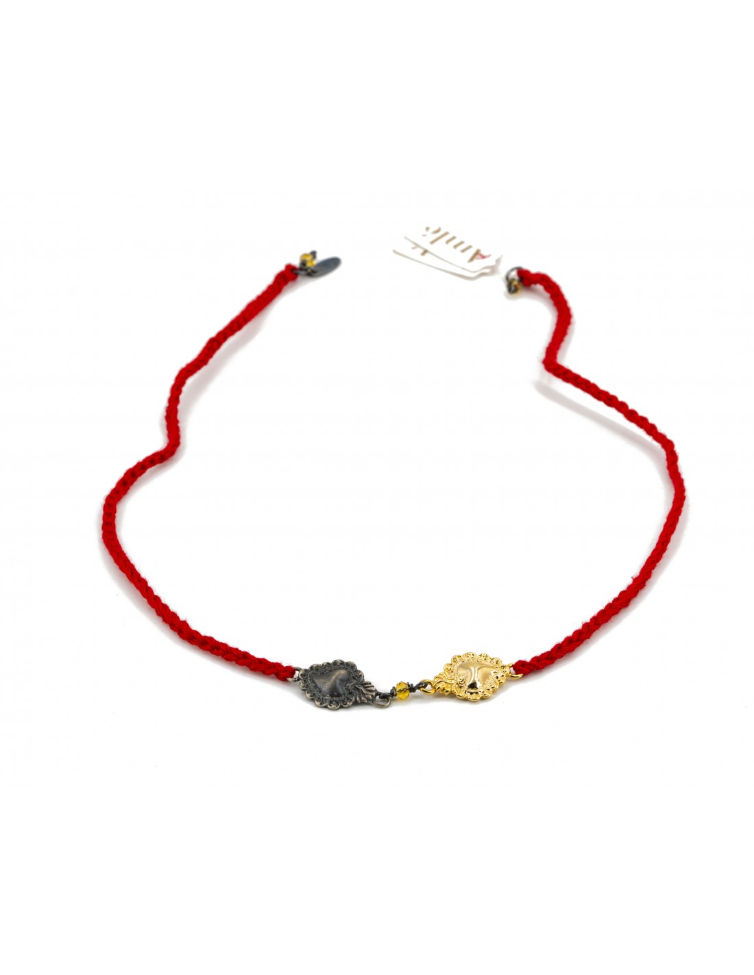 Braccialetto Amlè in cordino Rosso e Cuori Sacri in Argento