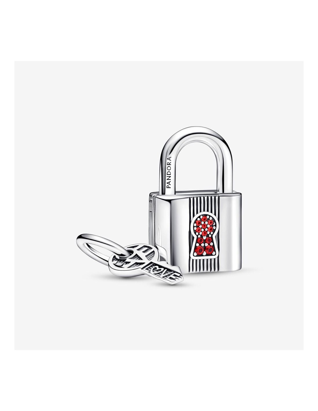 Charm Pendente Lucchetto e Chiave dell’Amore con Pietre Rosse