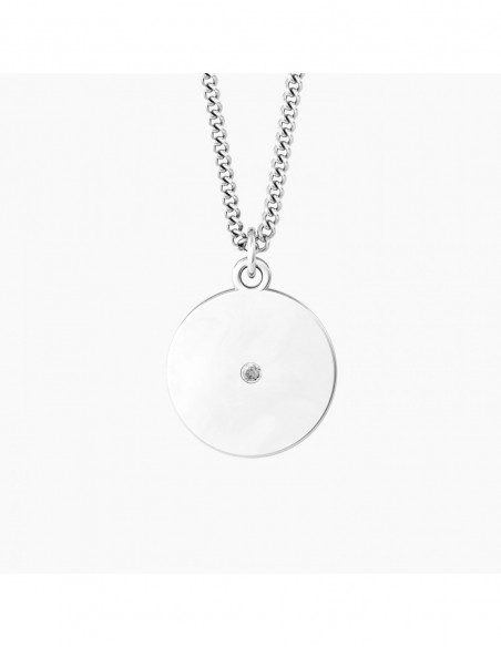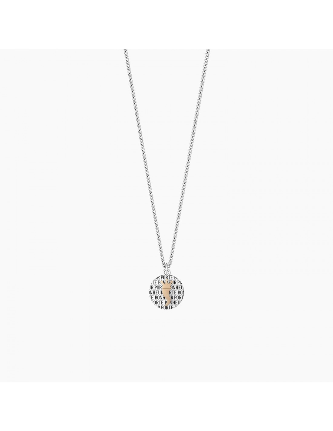 Lasciati proteggere e diffondi la tua energia positiva. Questo amuleto ti porterˆ fortuna. Collana corta in acciaio con ciondolo lucido tondo con cornetto in rilievo color oro rosa e cristallo e catena rol˜.