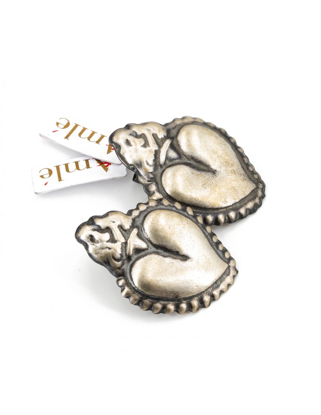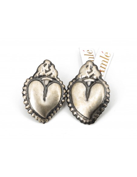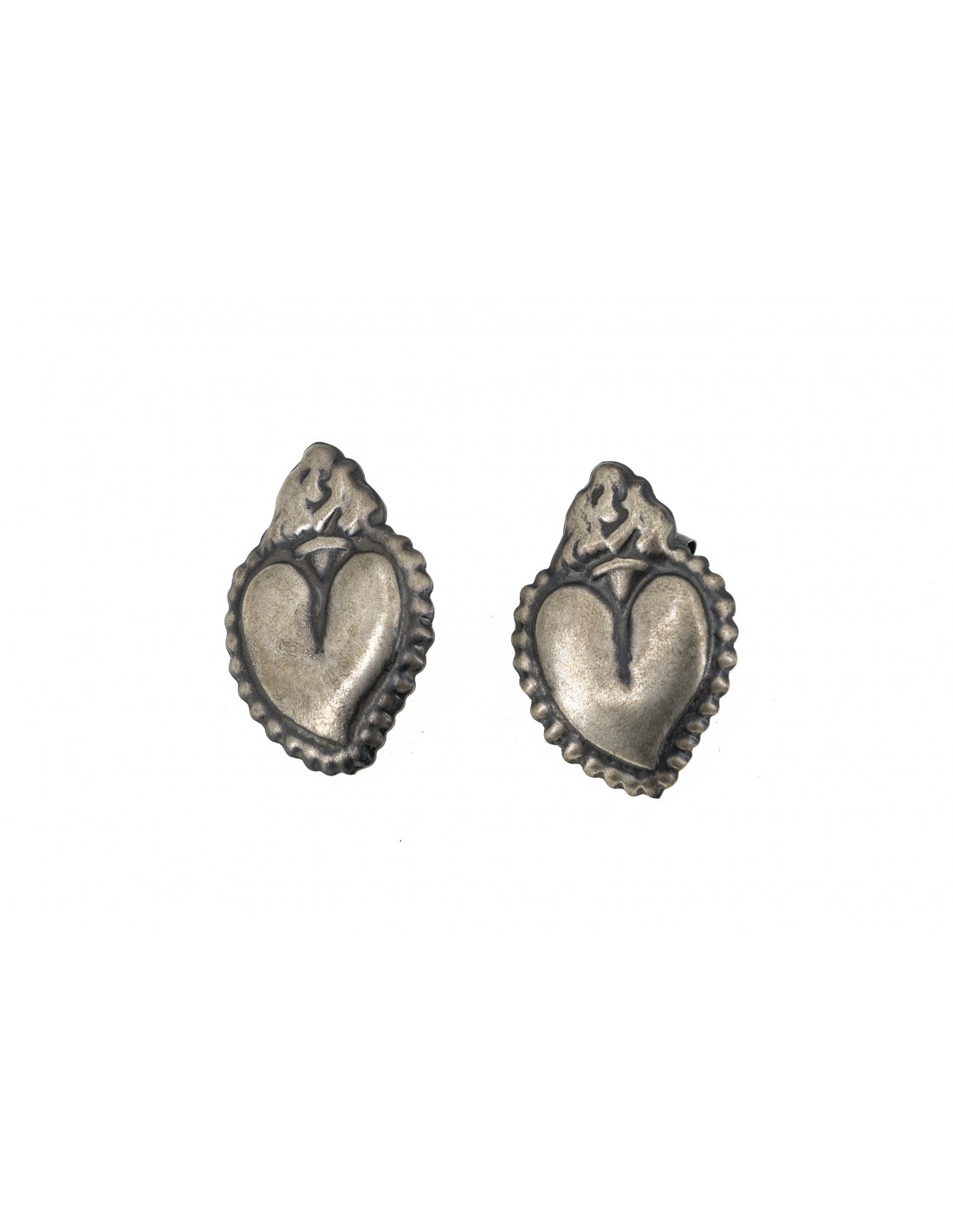 Orecchini Amlè con doppio Cuore Sacro in Argento Brunito (925). Tipo di Chiusura a Perno con farfallina.