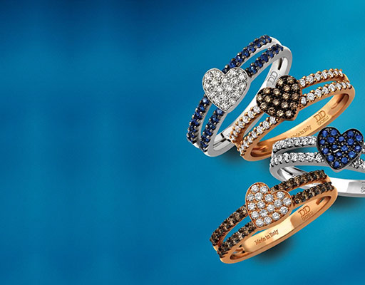 Anello Marika diamaond con zaffiro roa a cuore e gocce laterali con...