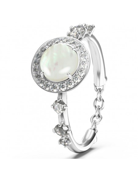 Anello in Argento con Madre Perla Cabochon e Zirconi bianchi - Gioielli Rosato