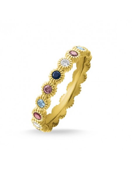 Categoria anello. Materiale argento sterling 925 placcato oro giallo 18 carati. Pietre zircone sintetico color champagne, spinello sintetico celeste, zircone sintetico marrone, gemma vetro-ceramica blu, zircone sintetico rosa. Colore oro giallo, blu, color champagne, marrone, viola. Larghezza appross. 0,36 cm (0,14 pollici). Misura anello iso 56. Codice articolo TR2225-959-7.