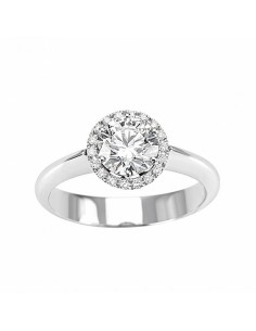 Anello Solitario in oro bianco (750) con Diamante centrale e piccoli diamanti incassati su castone circolare.