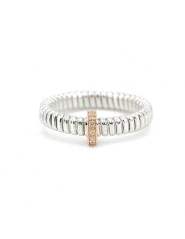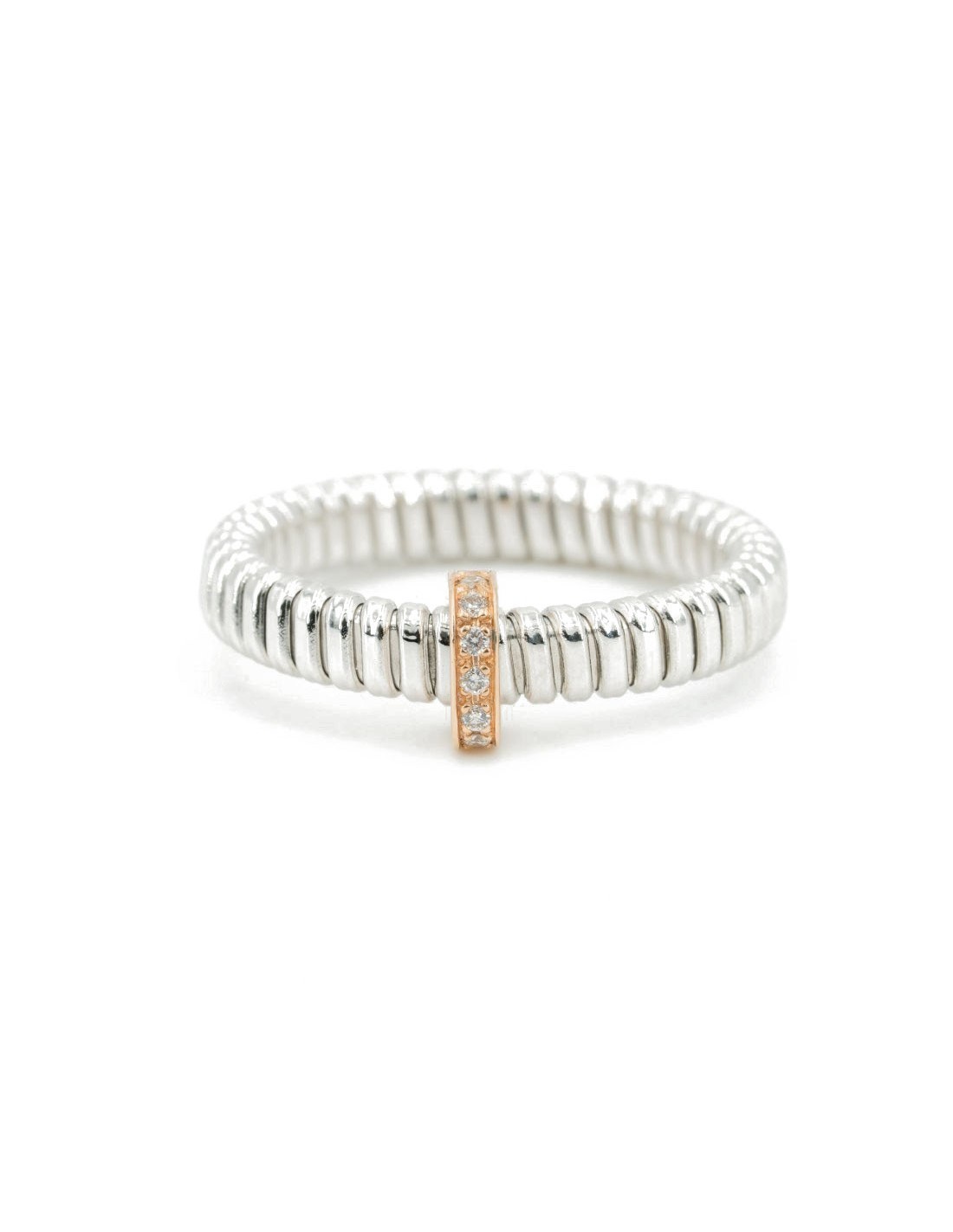 Anello tipo Tubogas in bianco (750) e Diamanti incastonati su oro rosè.