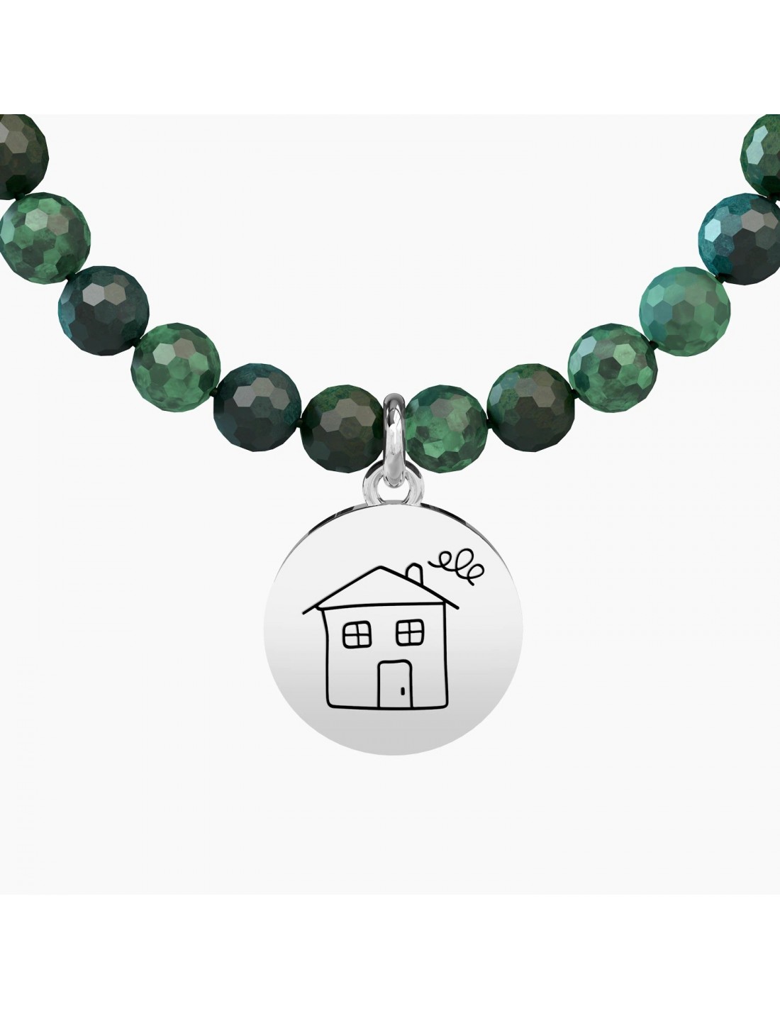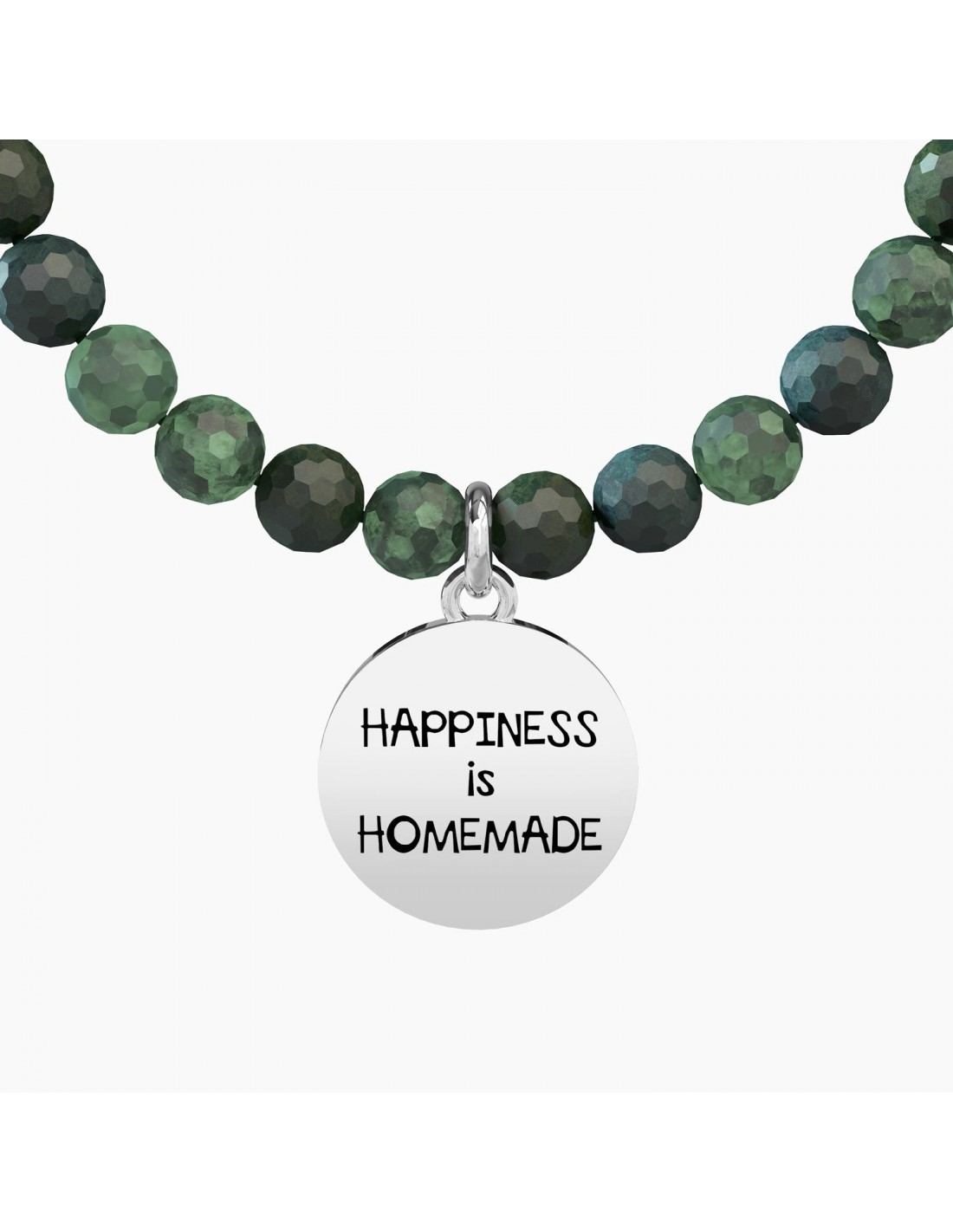 HAPPINESS is HOMEMADE Bracciale elastico con sfere in agata muschiata e ciondolo in acciaio tondo.