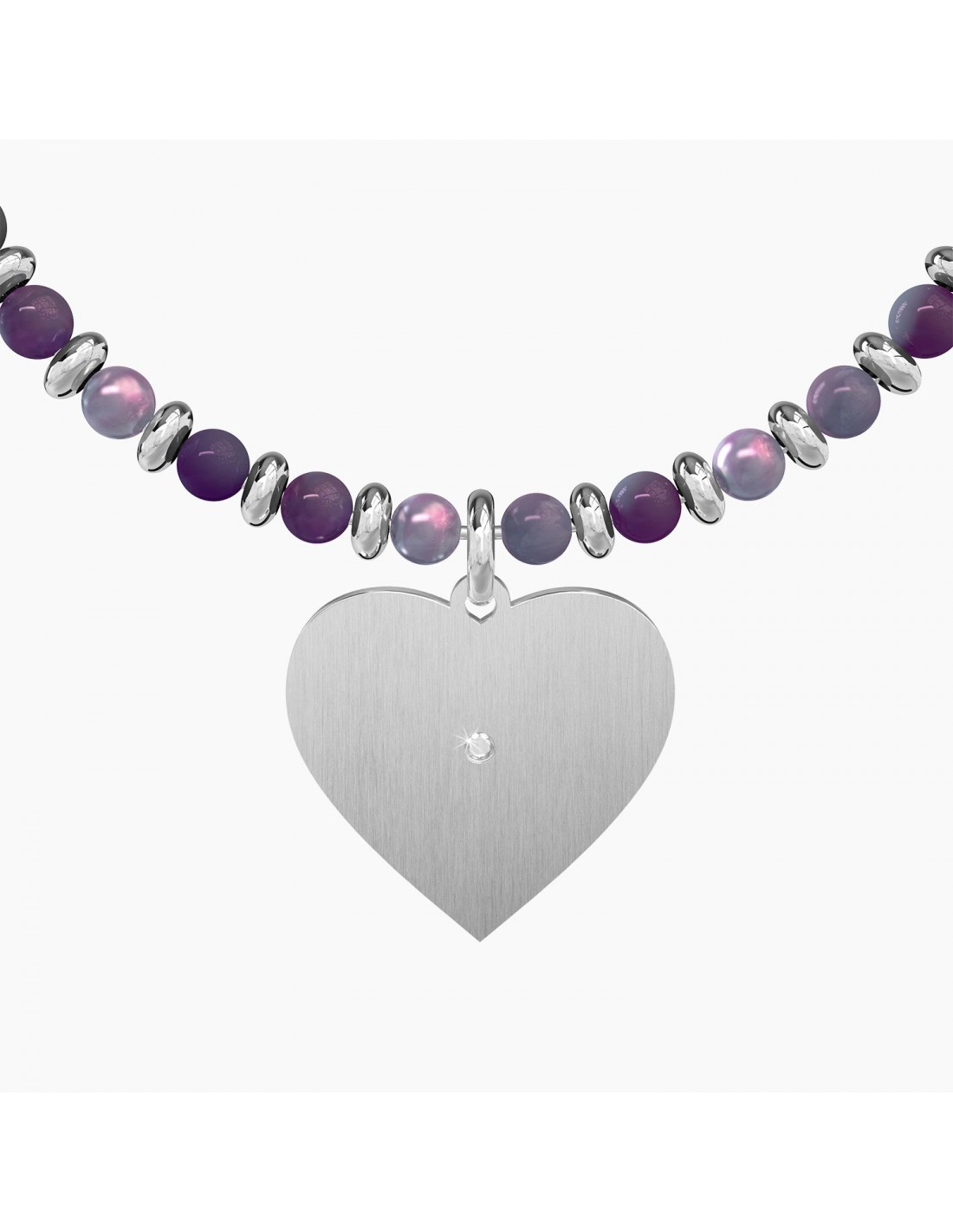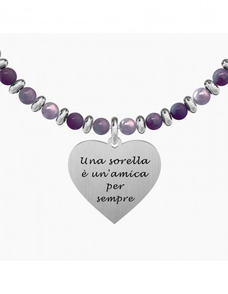 Una sorella  un'amica per sempre Bangle con filo armonico in acciaio, sfere in ametista e ciondolo satinato a cuore.
