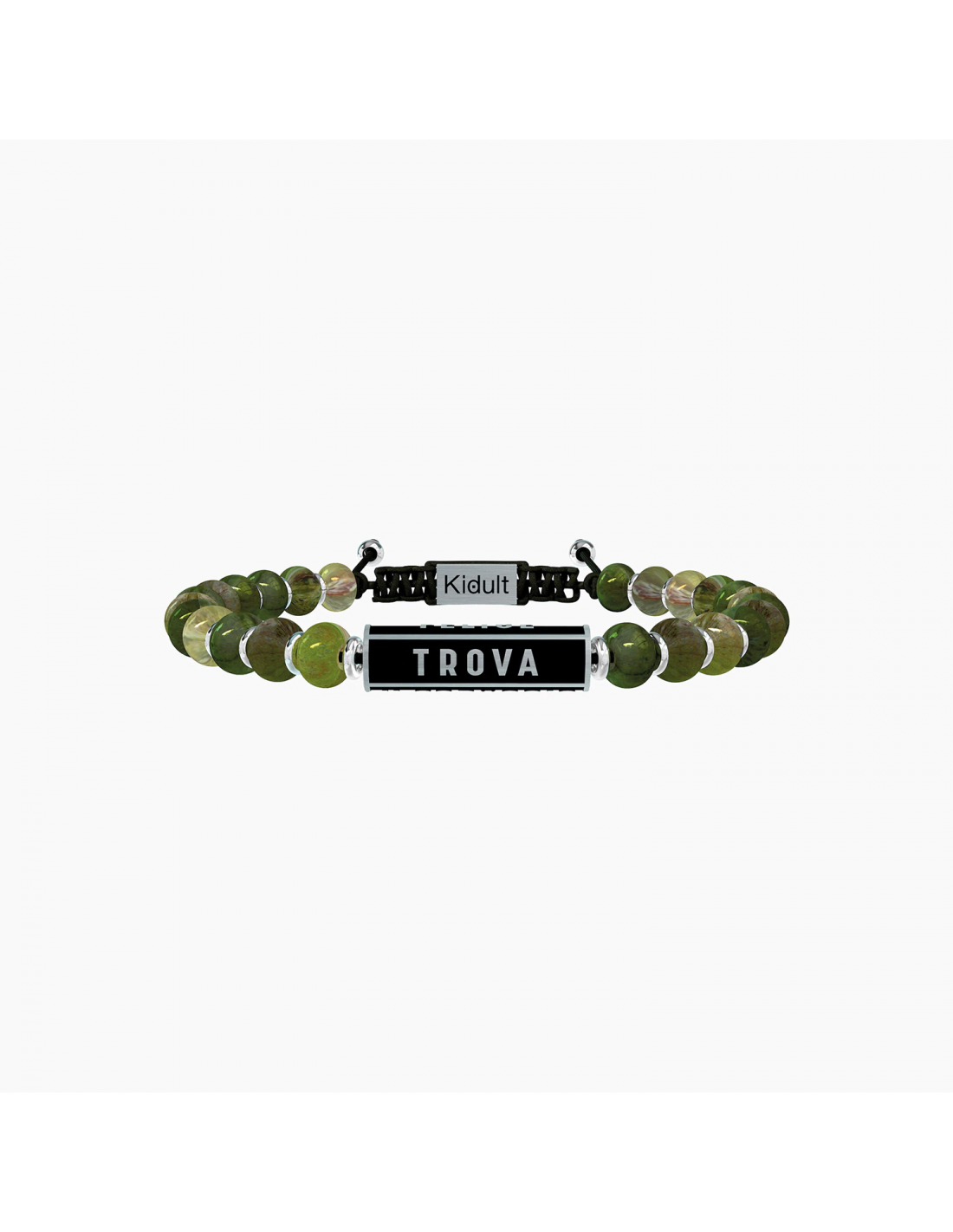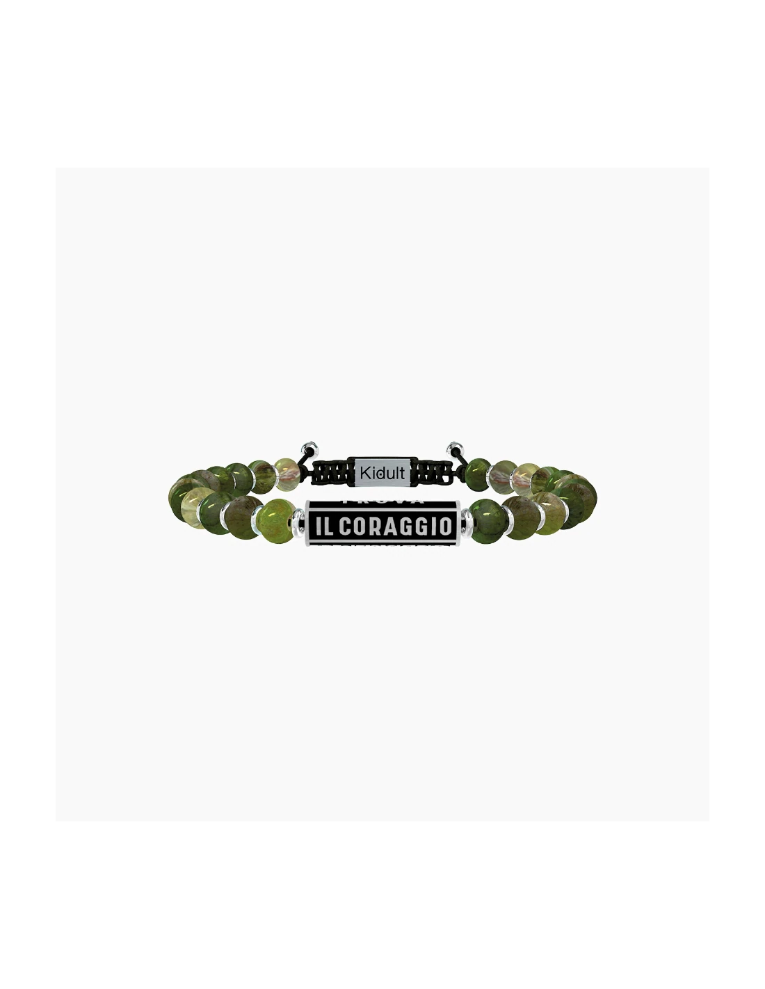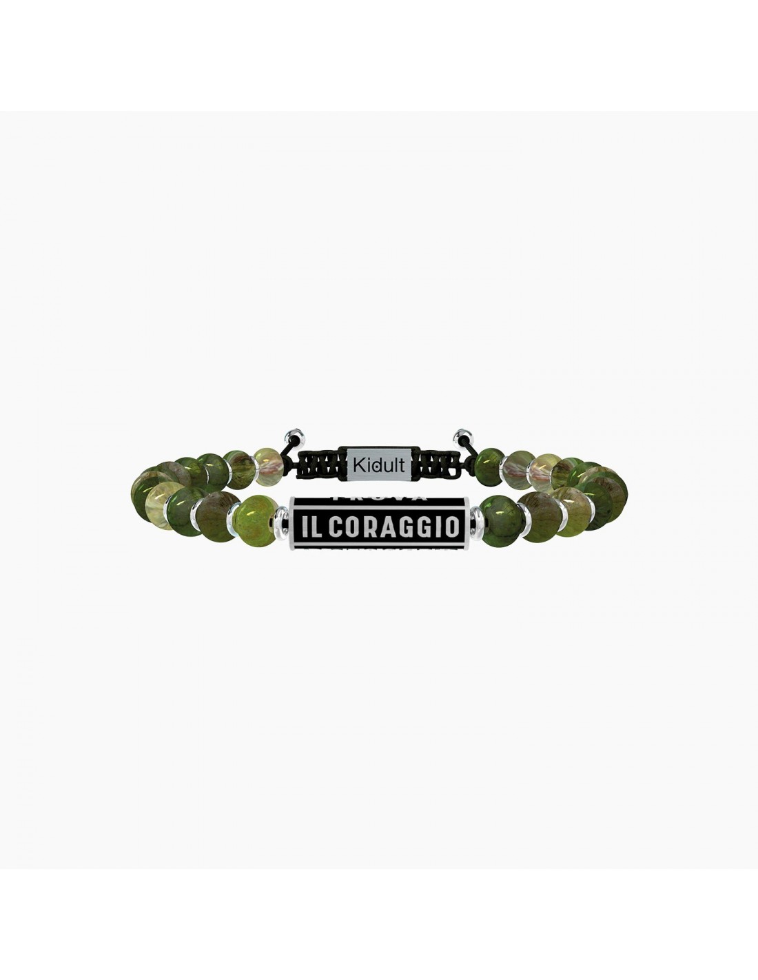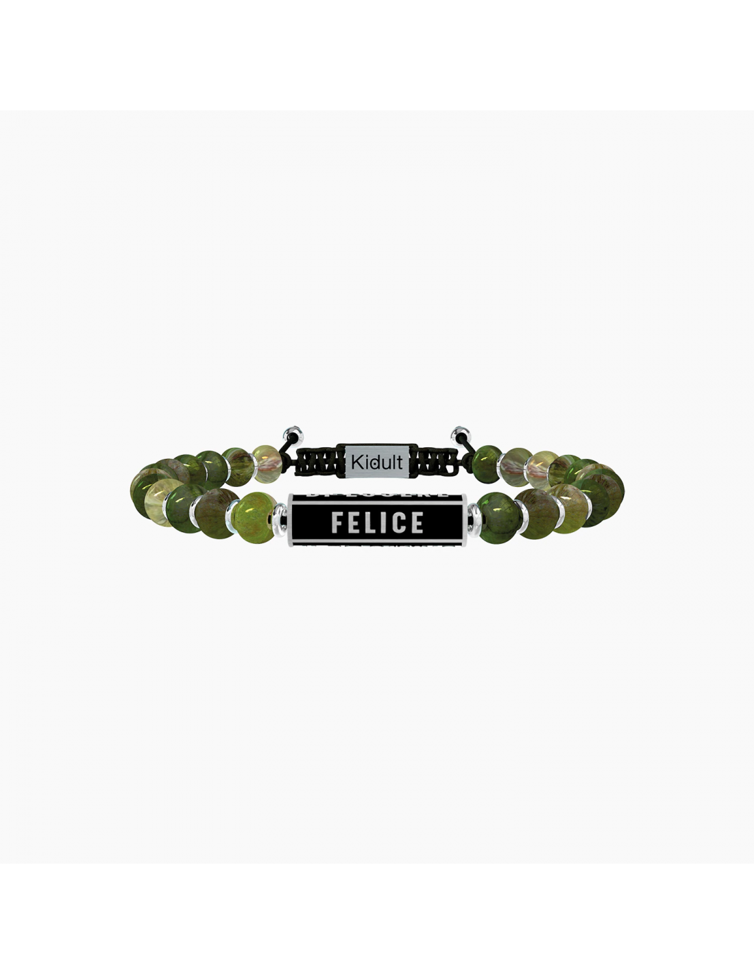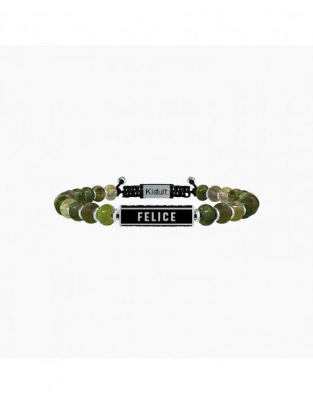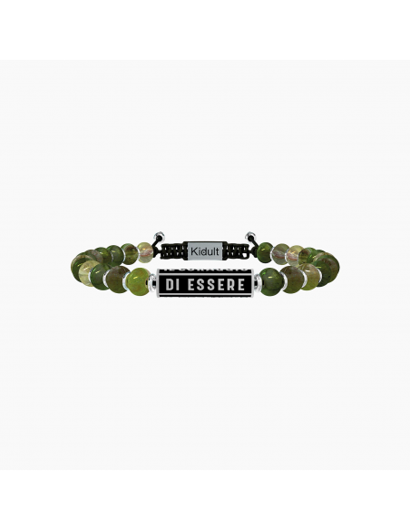 La felicitˆ  un viaggio fatto di scoperte e misteri, sorrisi e ostacoli, delusioni e desideri. La felicitˆ si costruisce ogni giorno con grinta e passione. Trova il coraggio di essere felice! Bracciale con sfere in diaspro verde e elemento cilindrico in acciaio di colore nero.