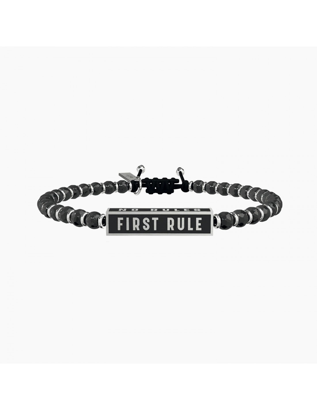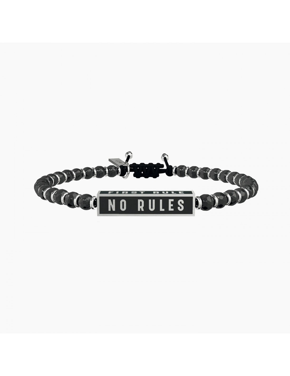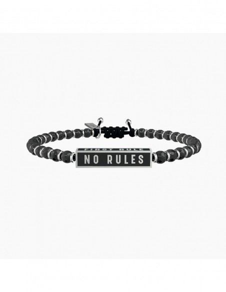 Gli schemi sono creati per essere infranti. I limiti sono fatti per essere superati. Per quelli come noi l'unica regola  che non ci sono regole. Bracciale con sfere in ematite e parallelepipedo in acciaio di color nero.