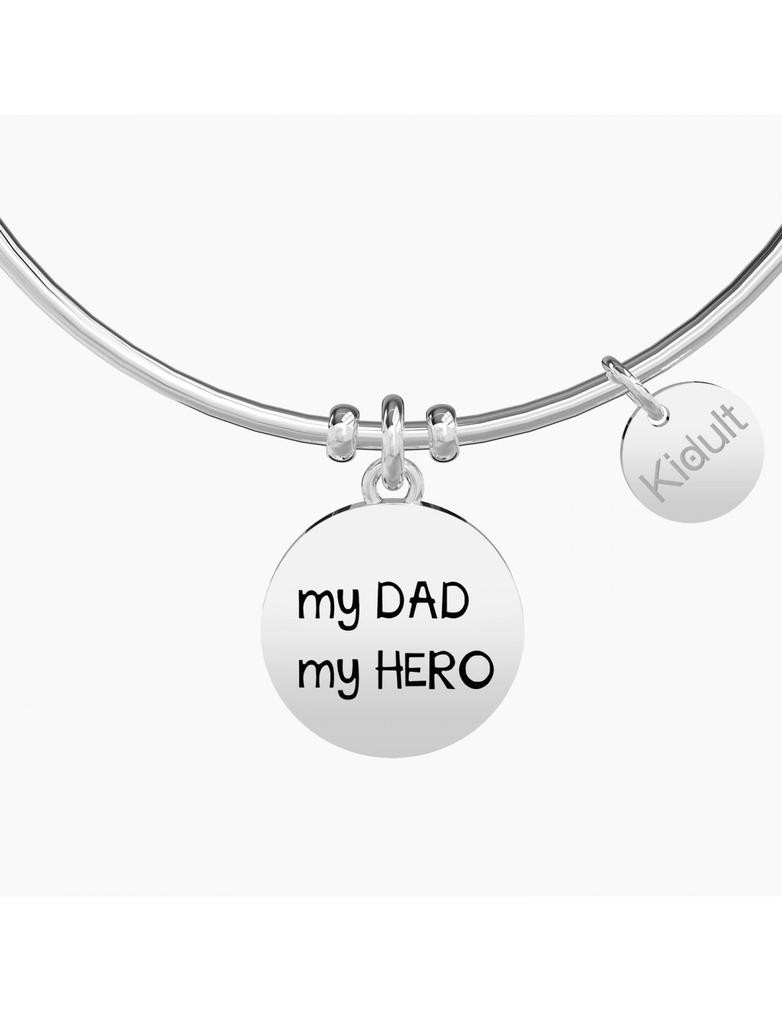 my DAD my HERO Bangle in acciaio con ciondolo tondo.