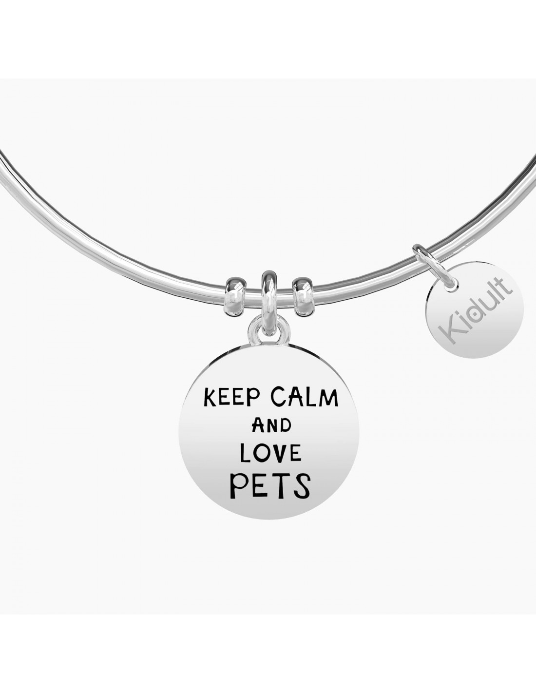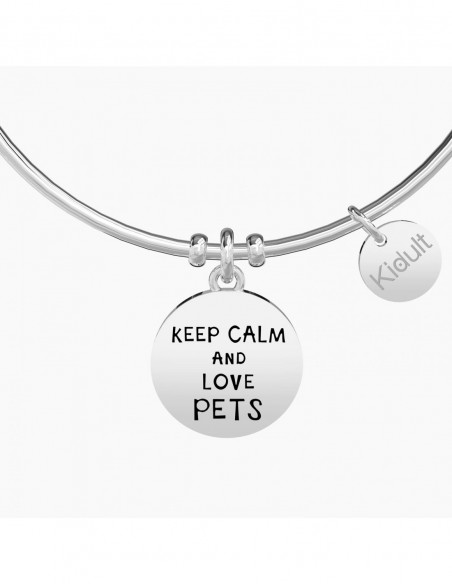 KEEP CALM AND LOVE PETS Bangle in acciaio con ciondolo tondo.