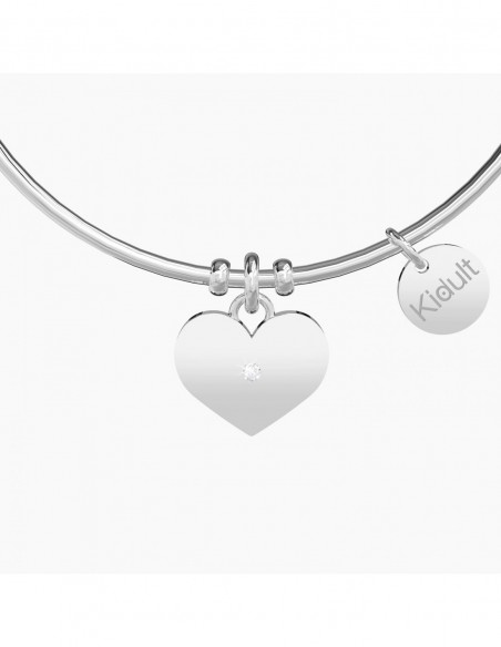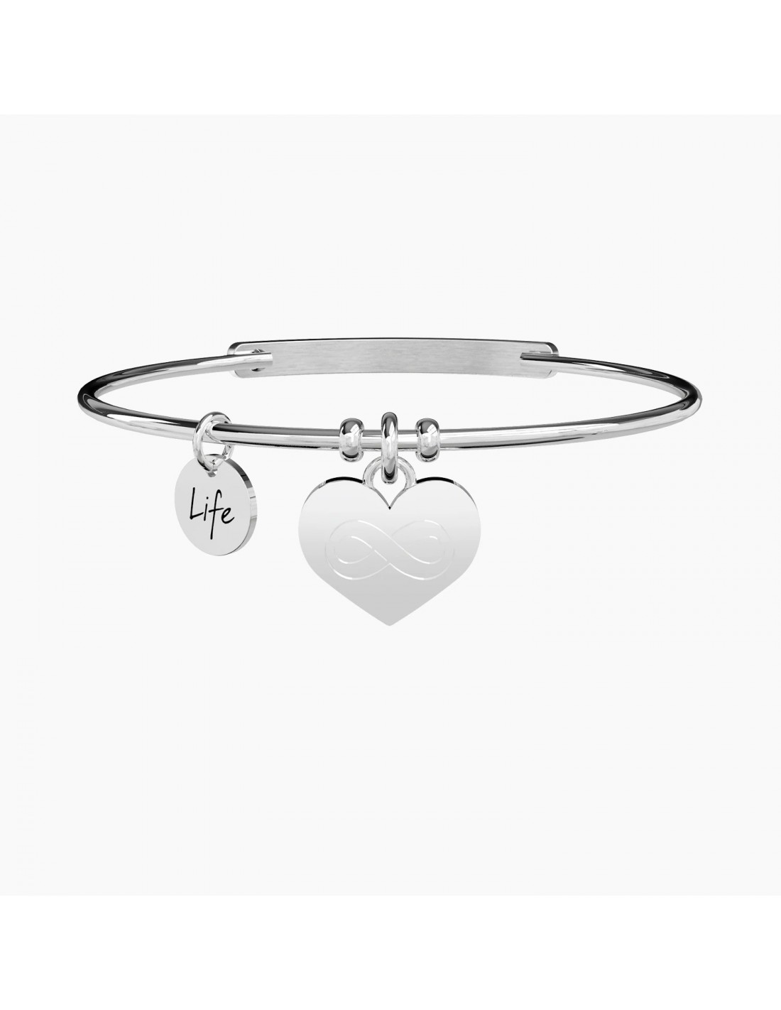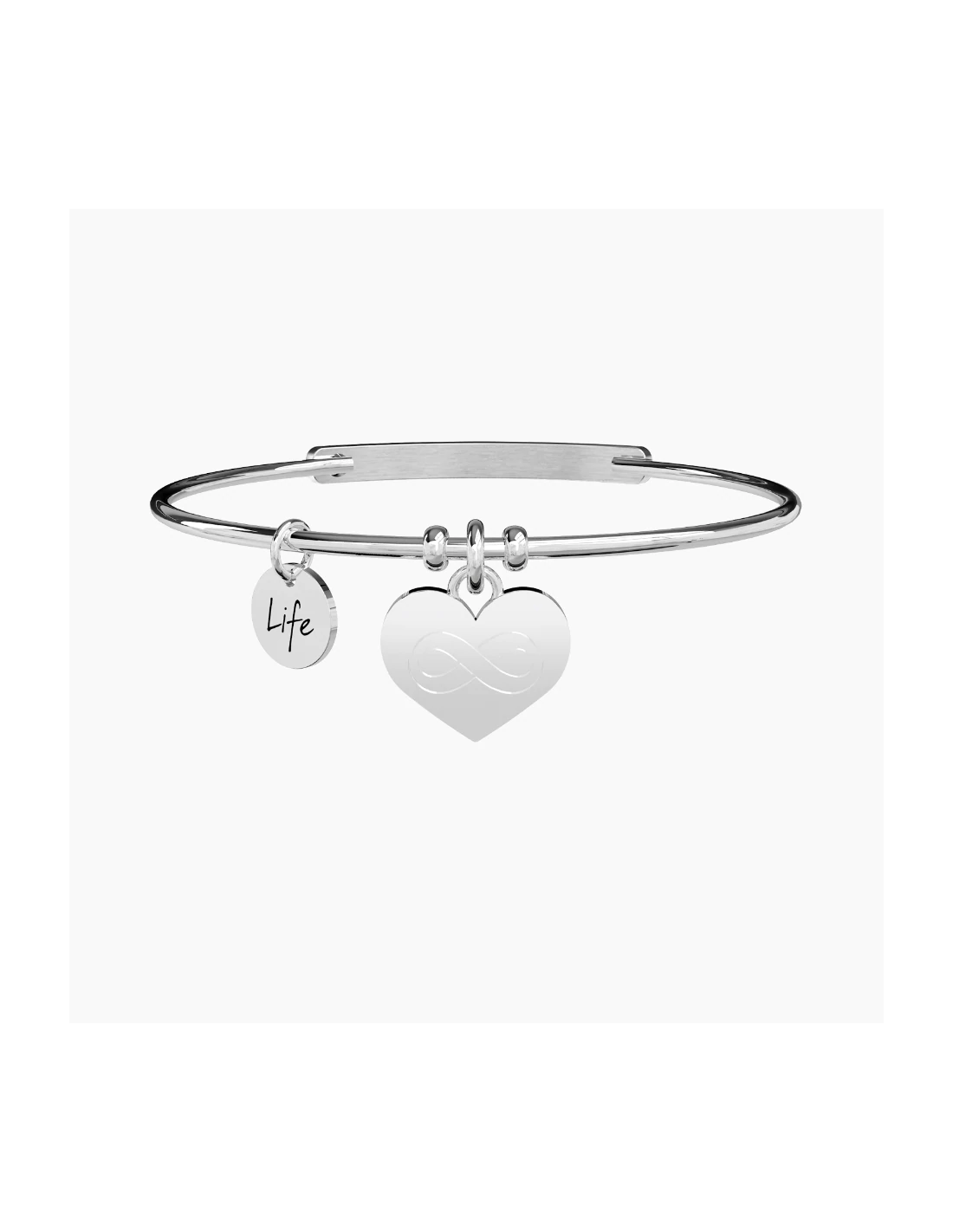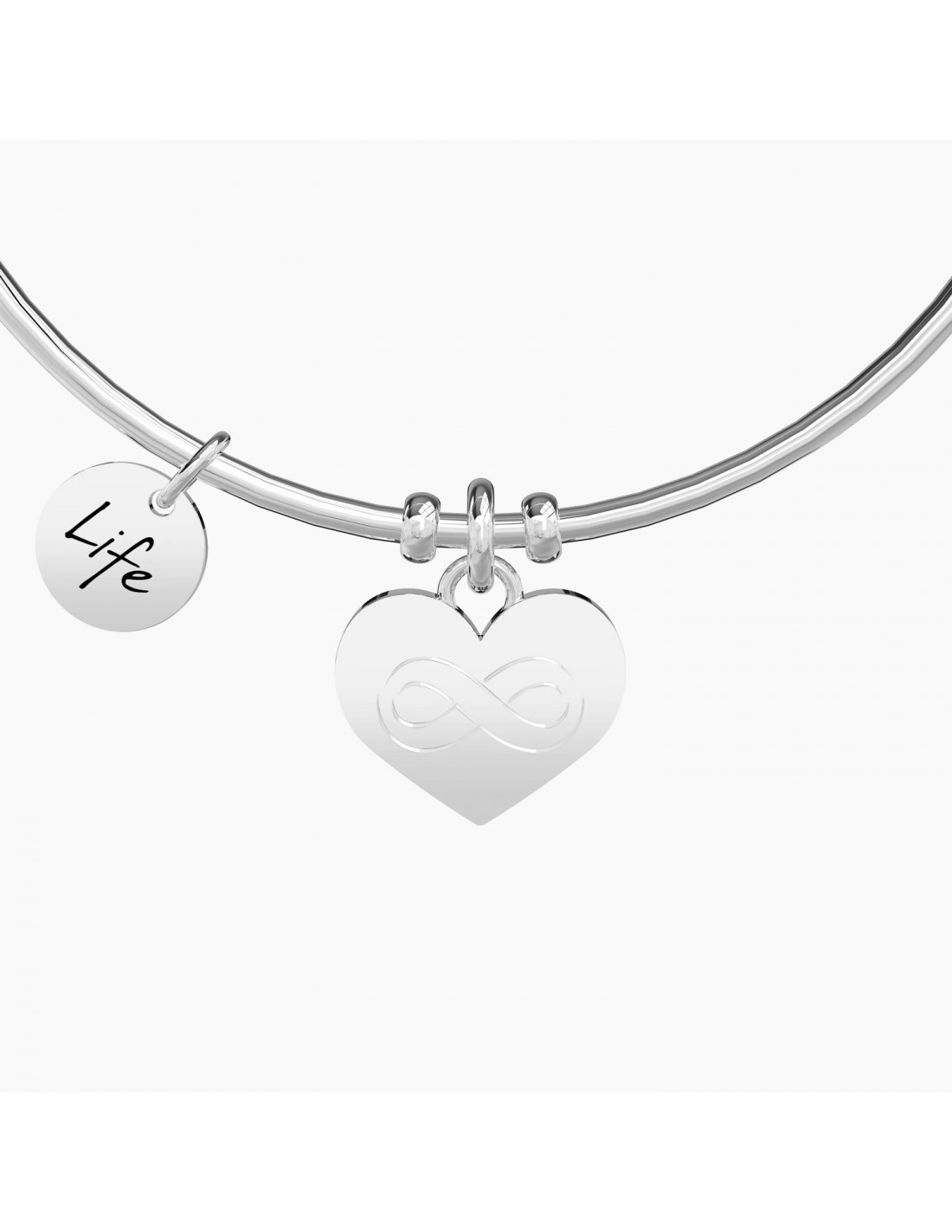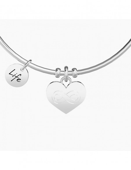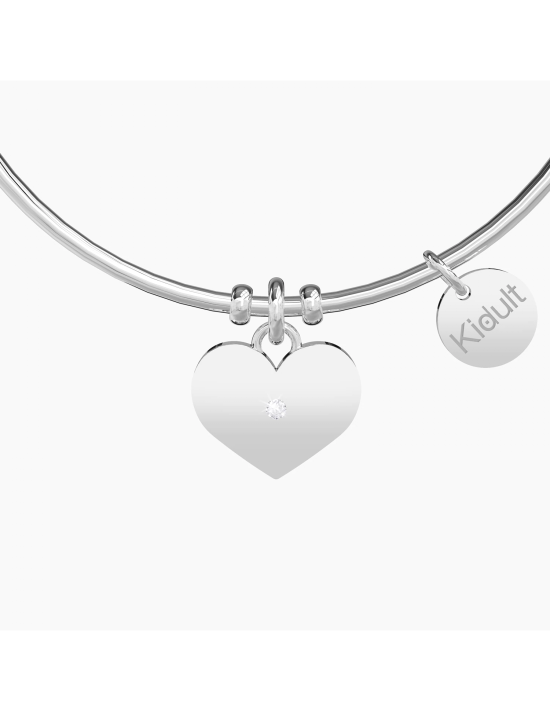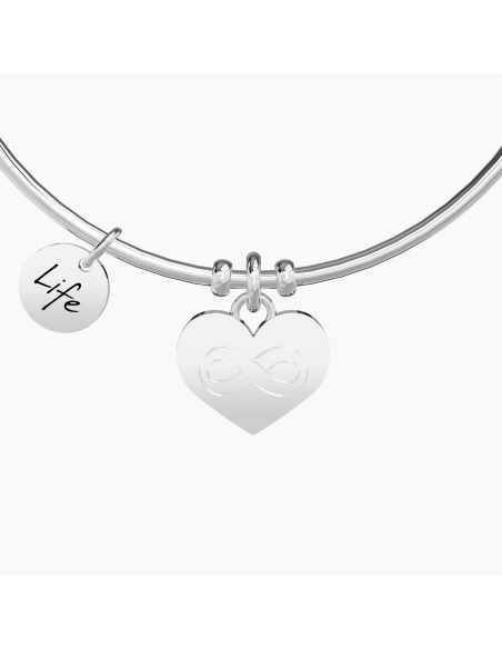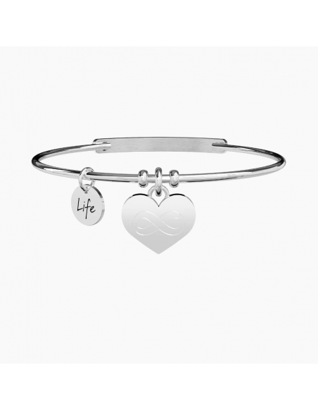 Non durer il tempo di una stagione, di un anno e nemmeno di una vita. Dove tutto nasce, cresce, finisce, solo una cosa durer per sempre... il vero amore. Bangle in acciaio con ciondolo a cuore.