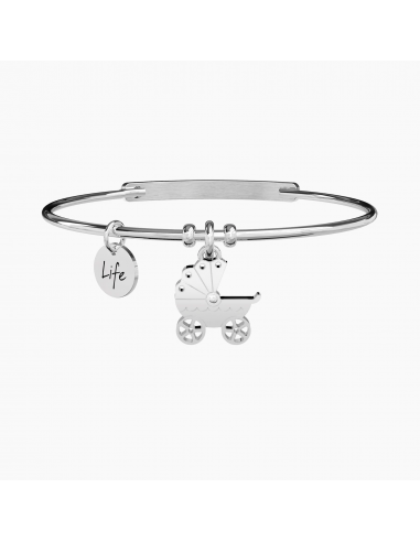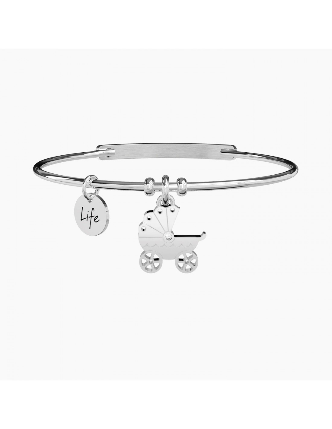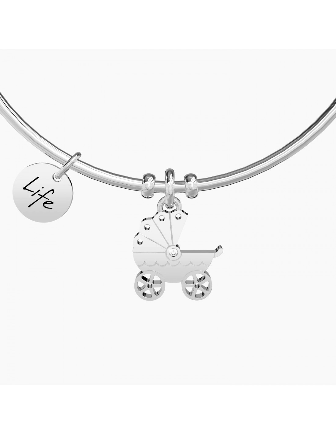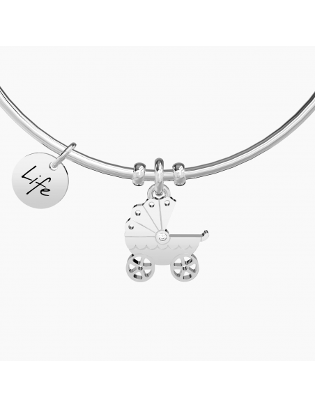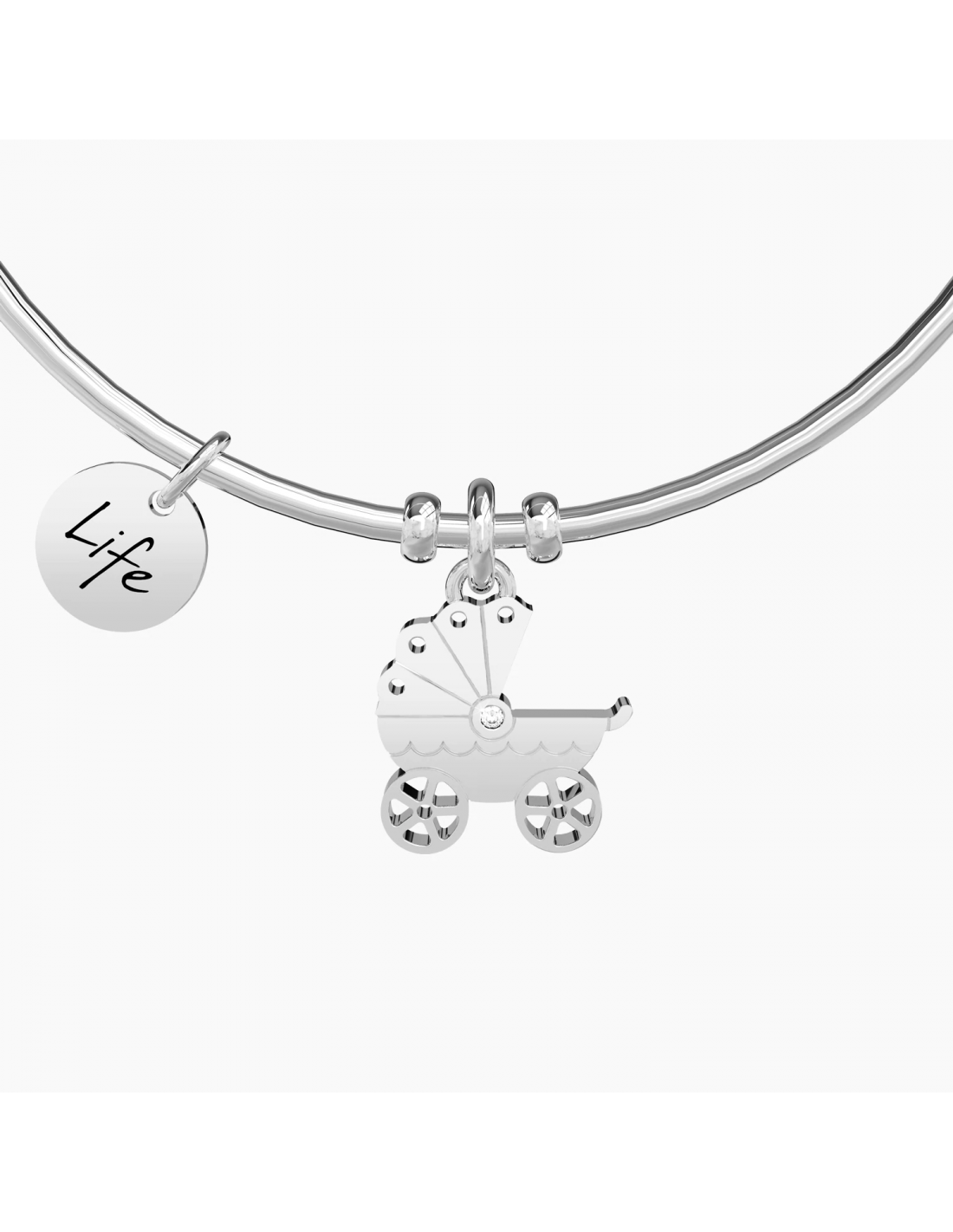Un dono per ricordarti ogni giorno uno dei momenti pi belli della tua vita, quando hai accolto per la prima volta tra le braccia il tuo piccolo grande amore. Congratulazioni! Bangle in acciaio con ciondolo Carrozzina.