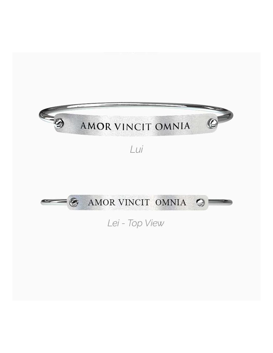 Materiale: Acciaio 316L, Cristallo Lui: Bangle in acciaio lucido con piastra rettangolare in acciaio satinato.