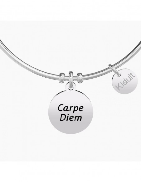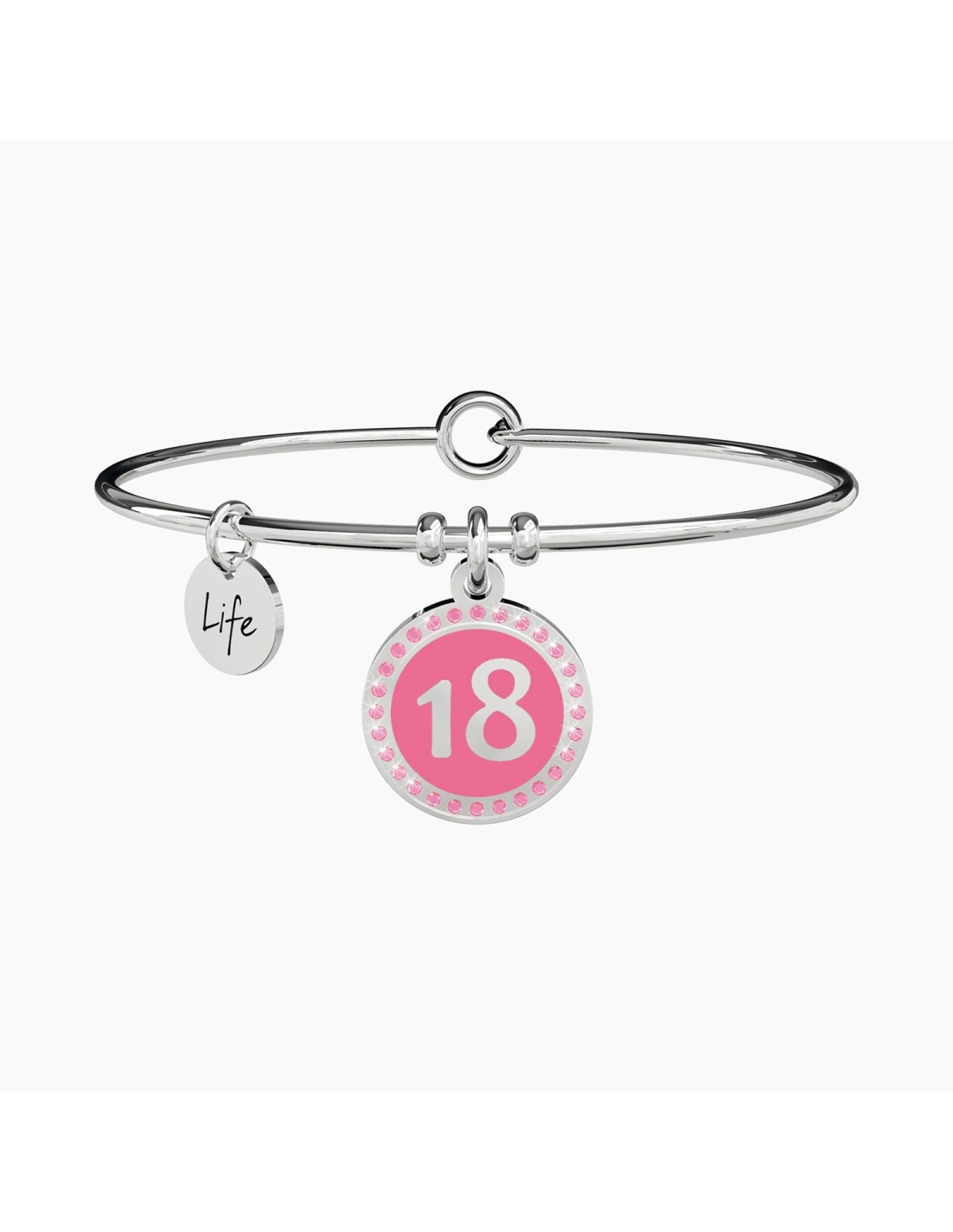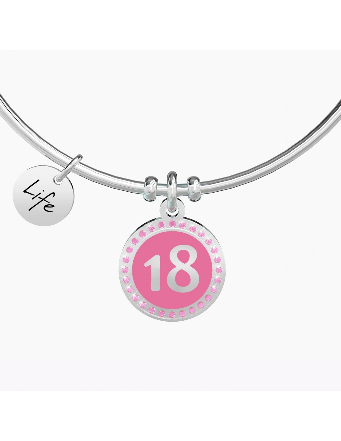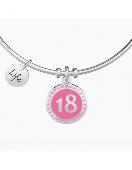 Bangle in acciaio con ciondolo tondo smaltato rosa.