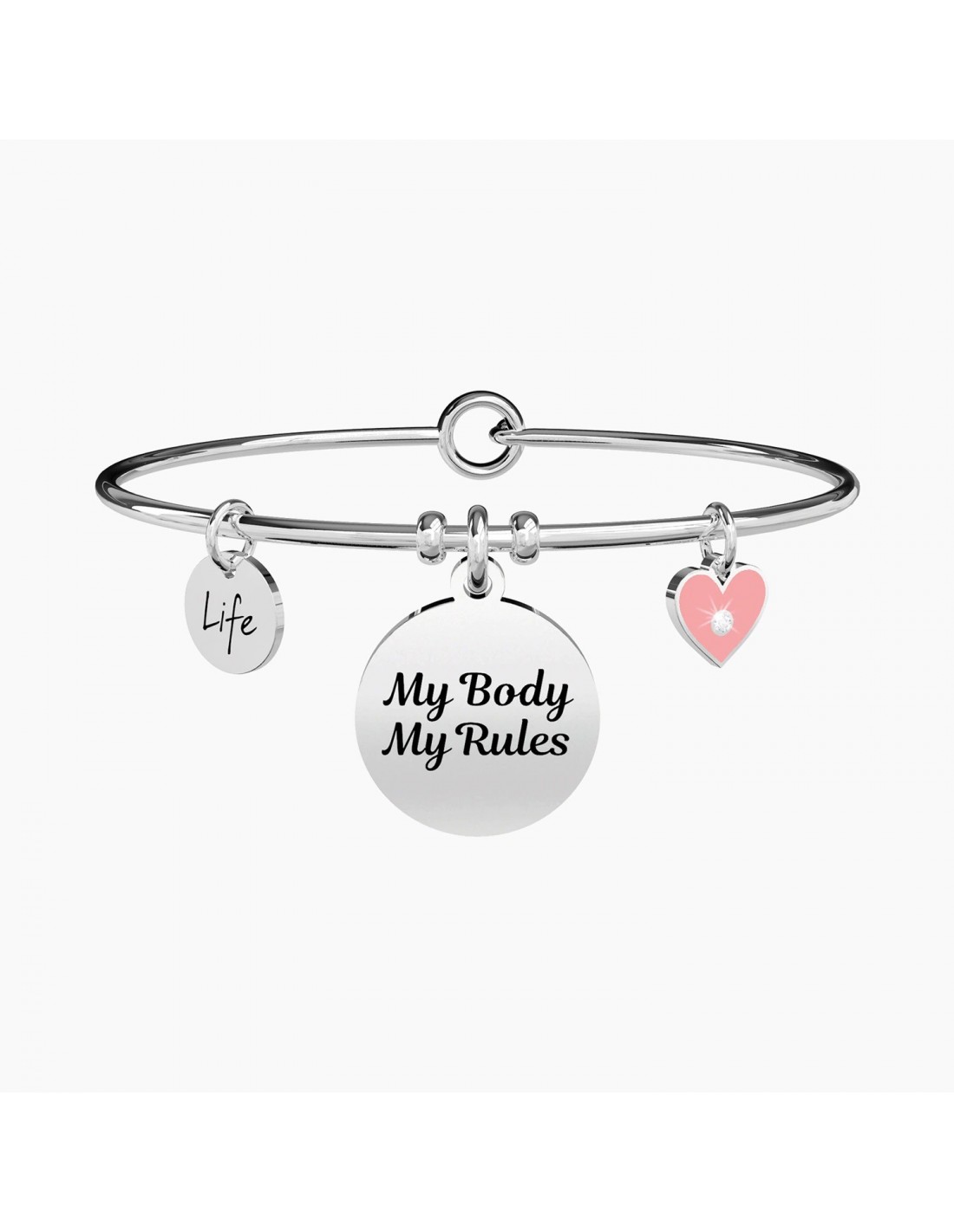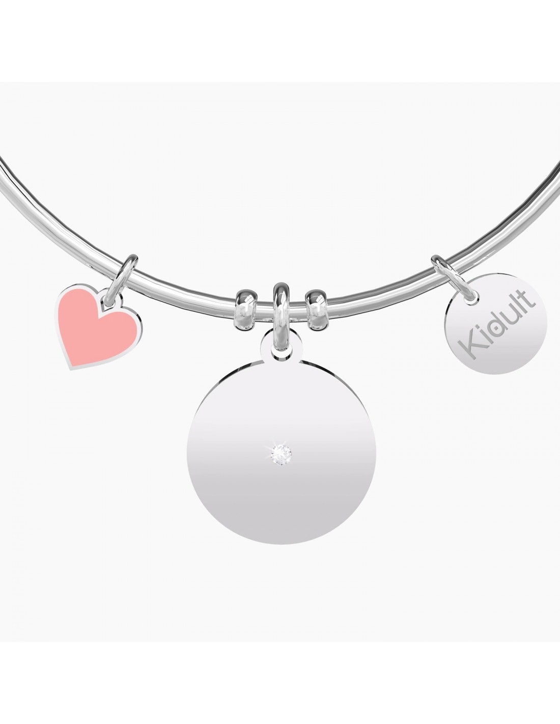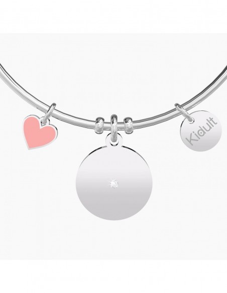 L'unica regola... é che sono io a stabilire le regole. Bangle in acciaio con ciondoli tondo e a piccolo cuore smaltato rosa.