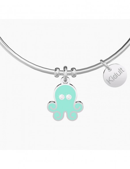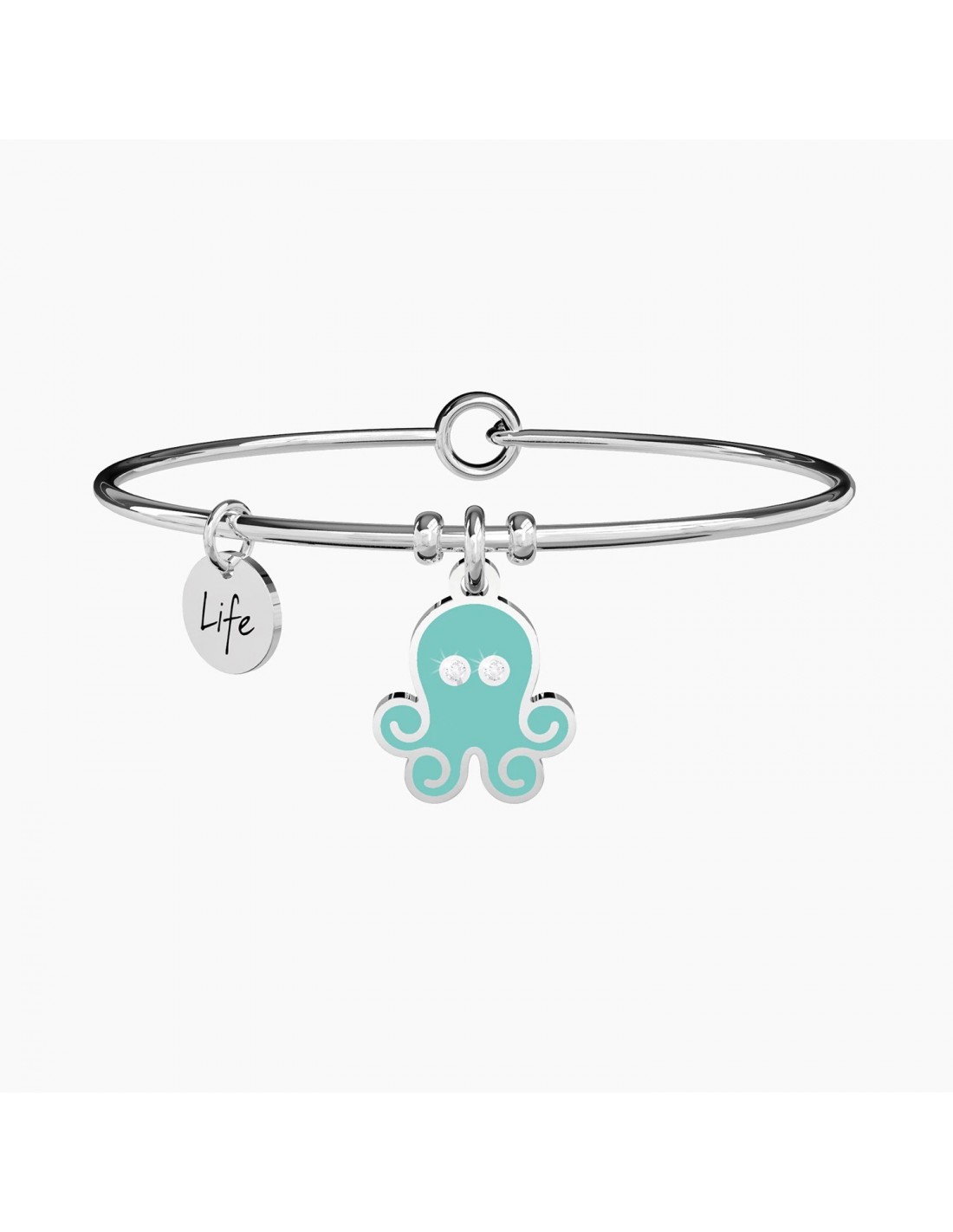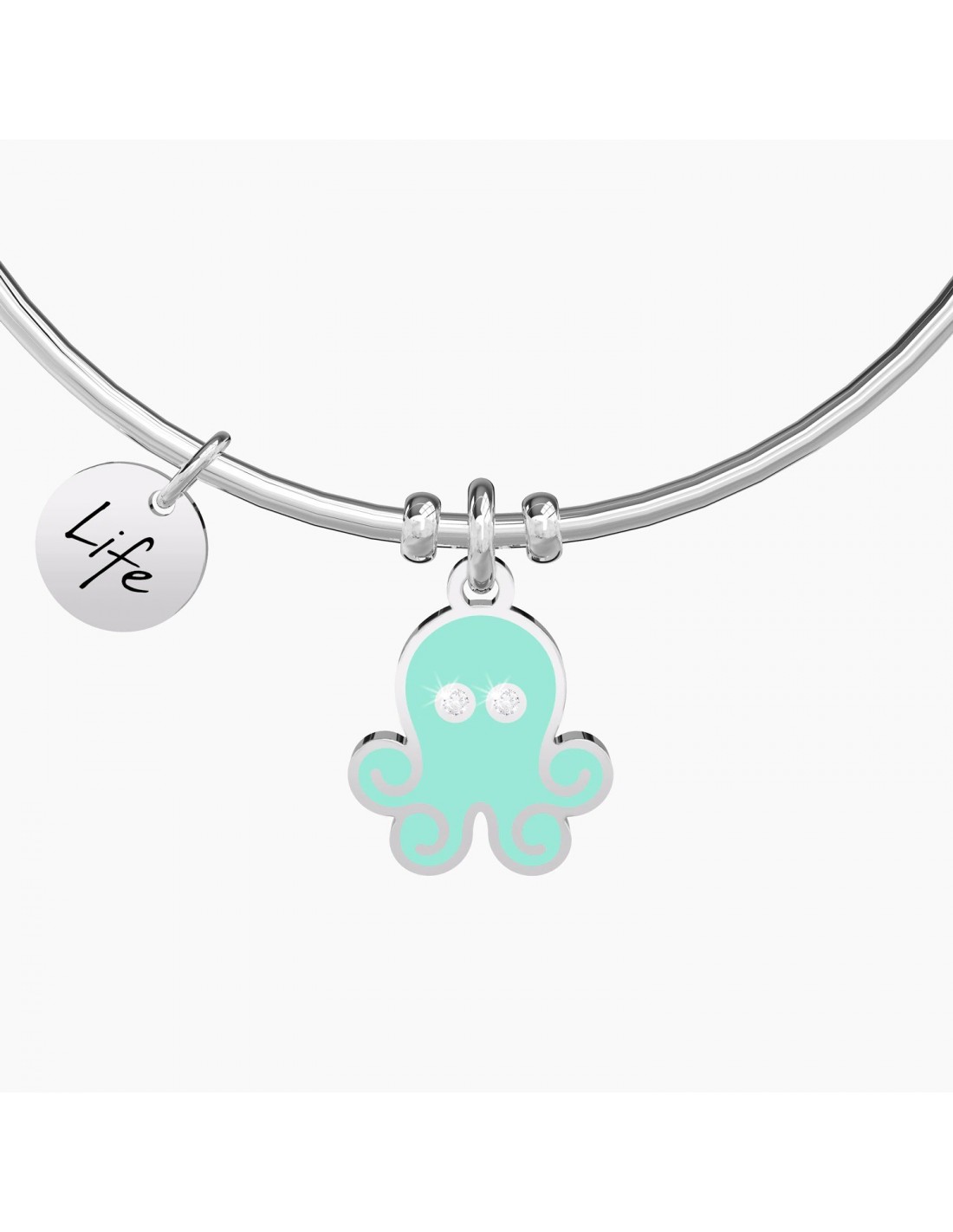Bangle in acciaio con ciondolo a polpo smaltato verde acqua.