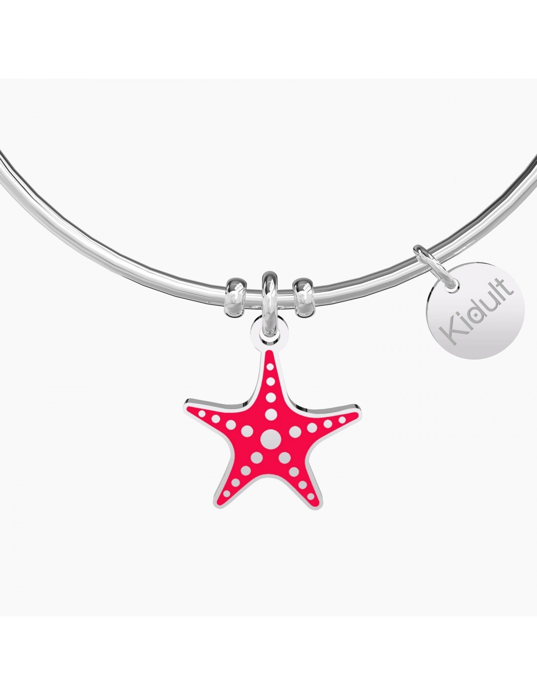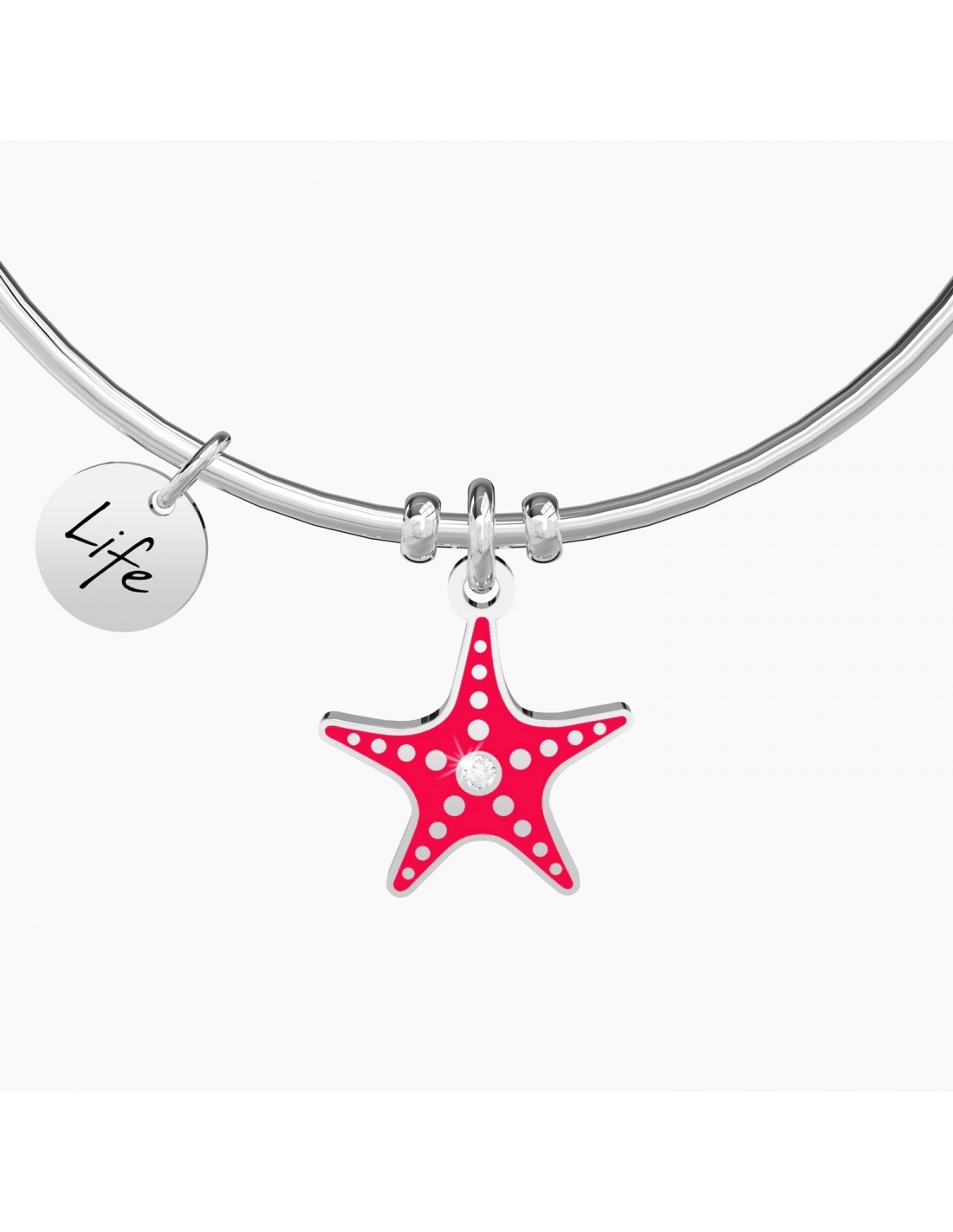 Bangle in acciaio con ciondolo a stella marina smaltato rosso.