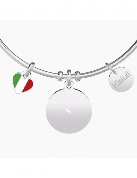 Bangle in acciaio con ciondoli tondo e piccolo cuore smaltato.