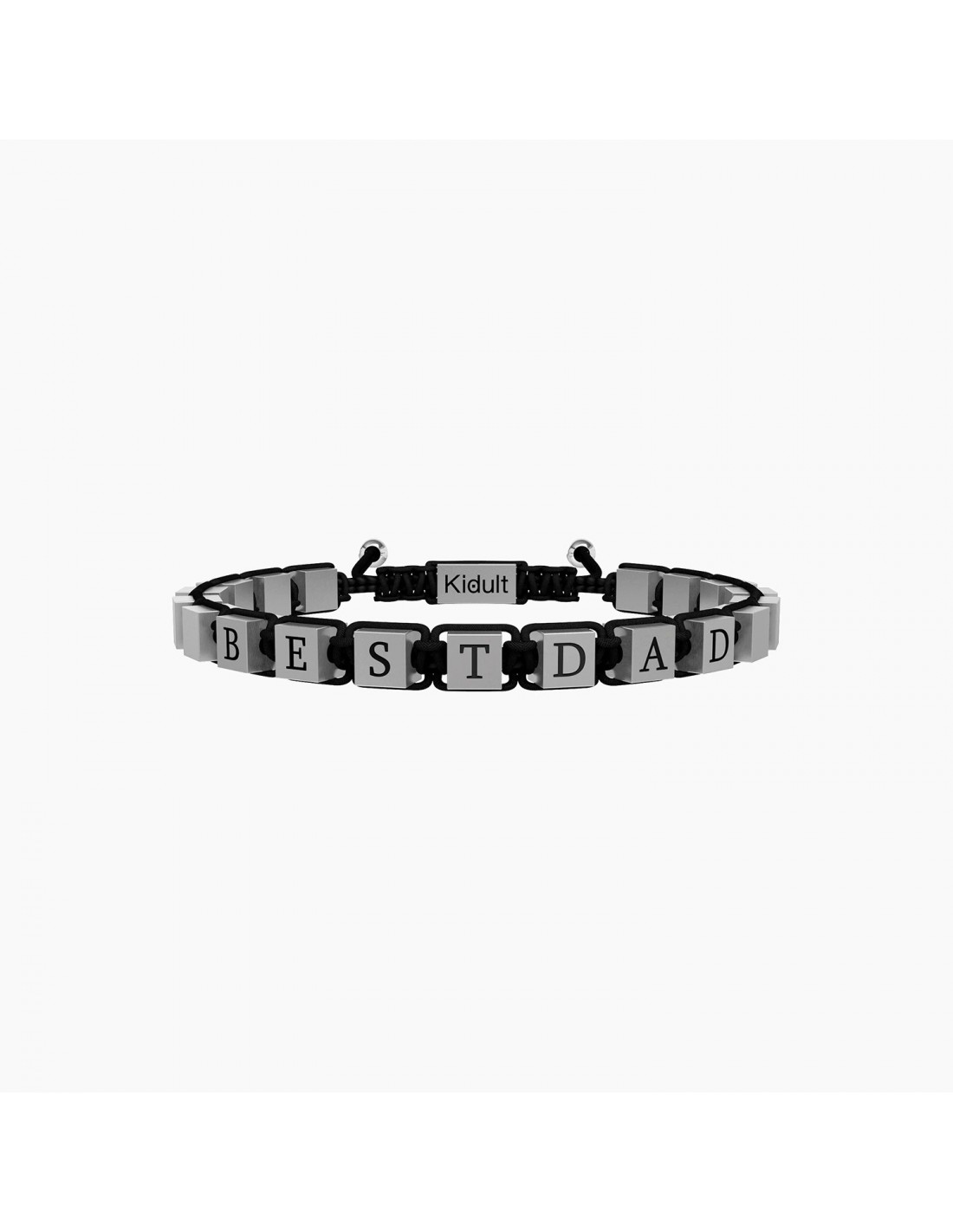 Mi proteggi, mi ascolti, mi incoraggi. Sei il padre che ho sempre desiderato... il papˆ migliore del mondo! Bracciale con cubetti in acciaio intrecciati con filo di nylon nero.