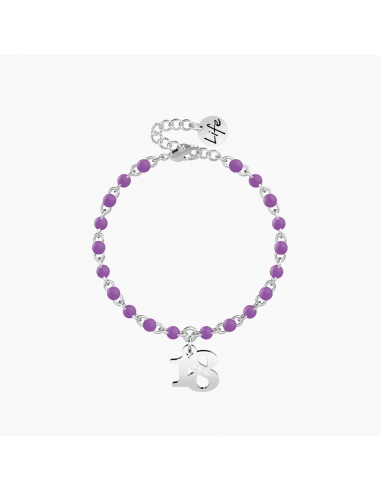 Cogli l'attimo, vivi il presente. Bellezza e spensieratezza, amore e passione, sono questi gli anni pi belli della vita e sono qui, davanti a te. Buon diciottesimo! Bracciale in acciaio con ciondolo a 18 e catena rol˜ con inserimenti in smalto viola.