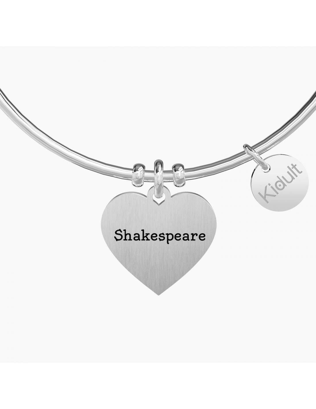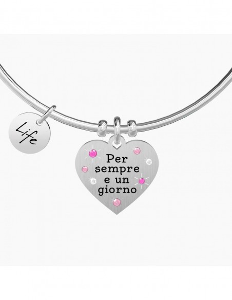 Bangle in acciaio con ciondolo satinato a cuore con cristalli colorati.