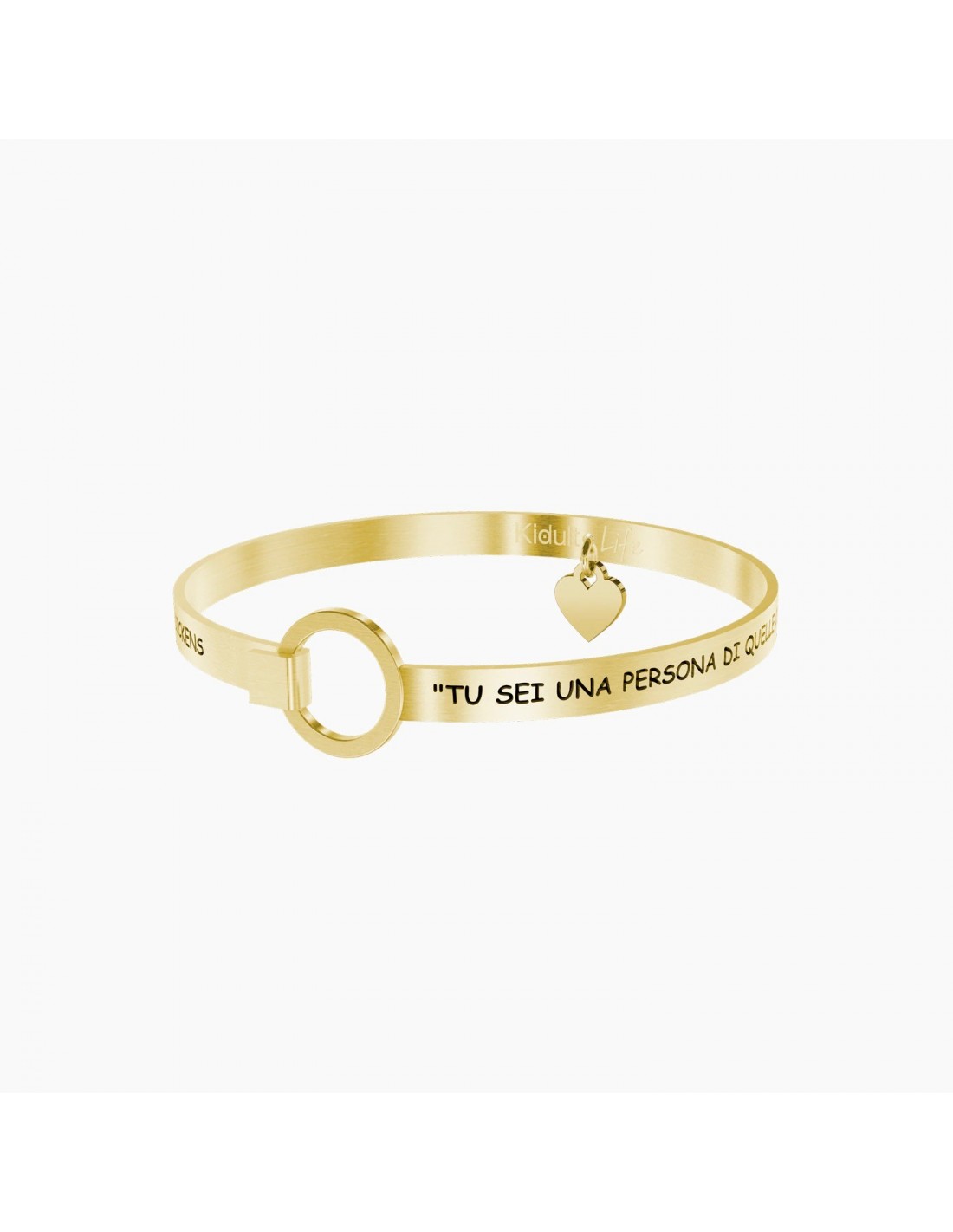 "Tu sei una persona di quelle che si incontrano quando la vita decide di farti un regalo." - Charles Dickens - Bangle in acciaio satinato color oro giallo con piccolo ciondolo a cuore.