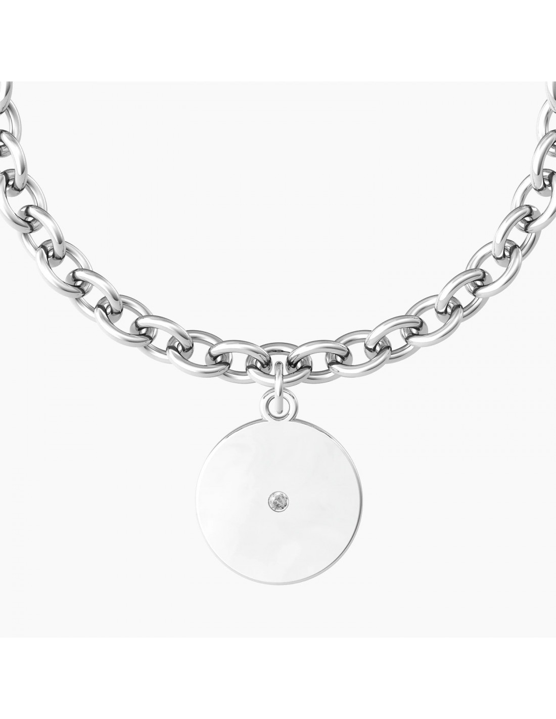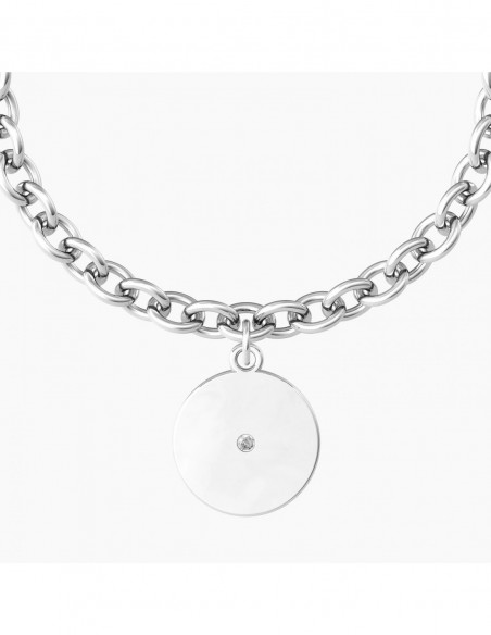 Guarda la luna e continua a sognare, ogni notte, tutte le volte che puoi. PerchŽ i sogni sono il motore dell'anima. Bracciale in acciaio con catena rol˜ "comfort fit" e ciondolo lucido tondo con luna in rilievo color oro giallo e cristallo.