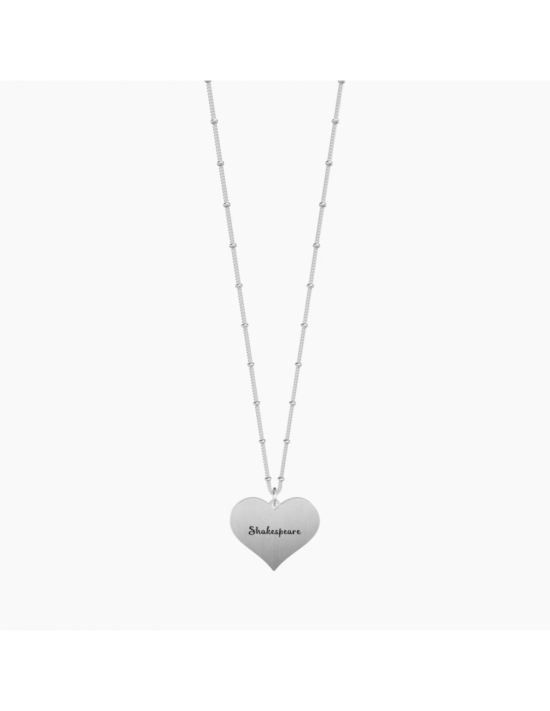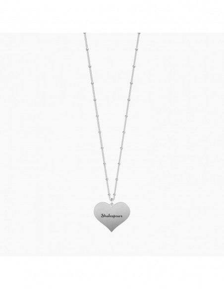 Collana di media lunghezza in acciaio con ciondolo satinato a cuore con cristalli colorati e catena groumette con anellini.
