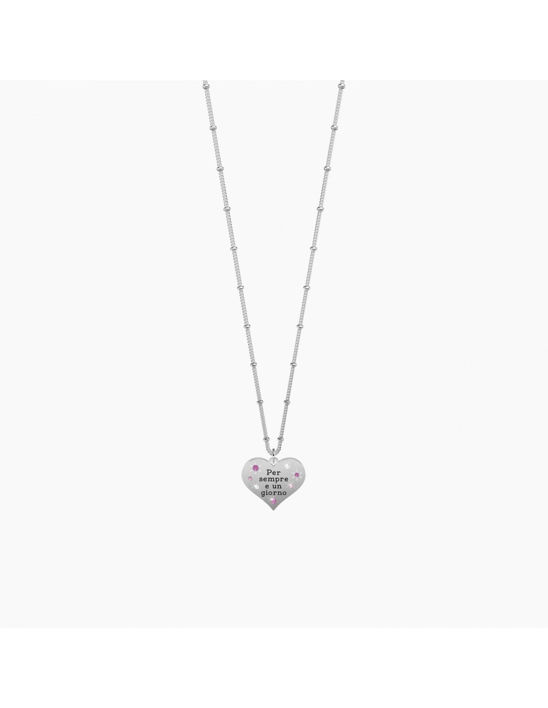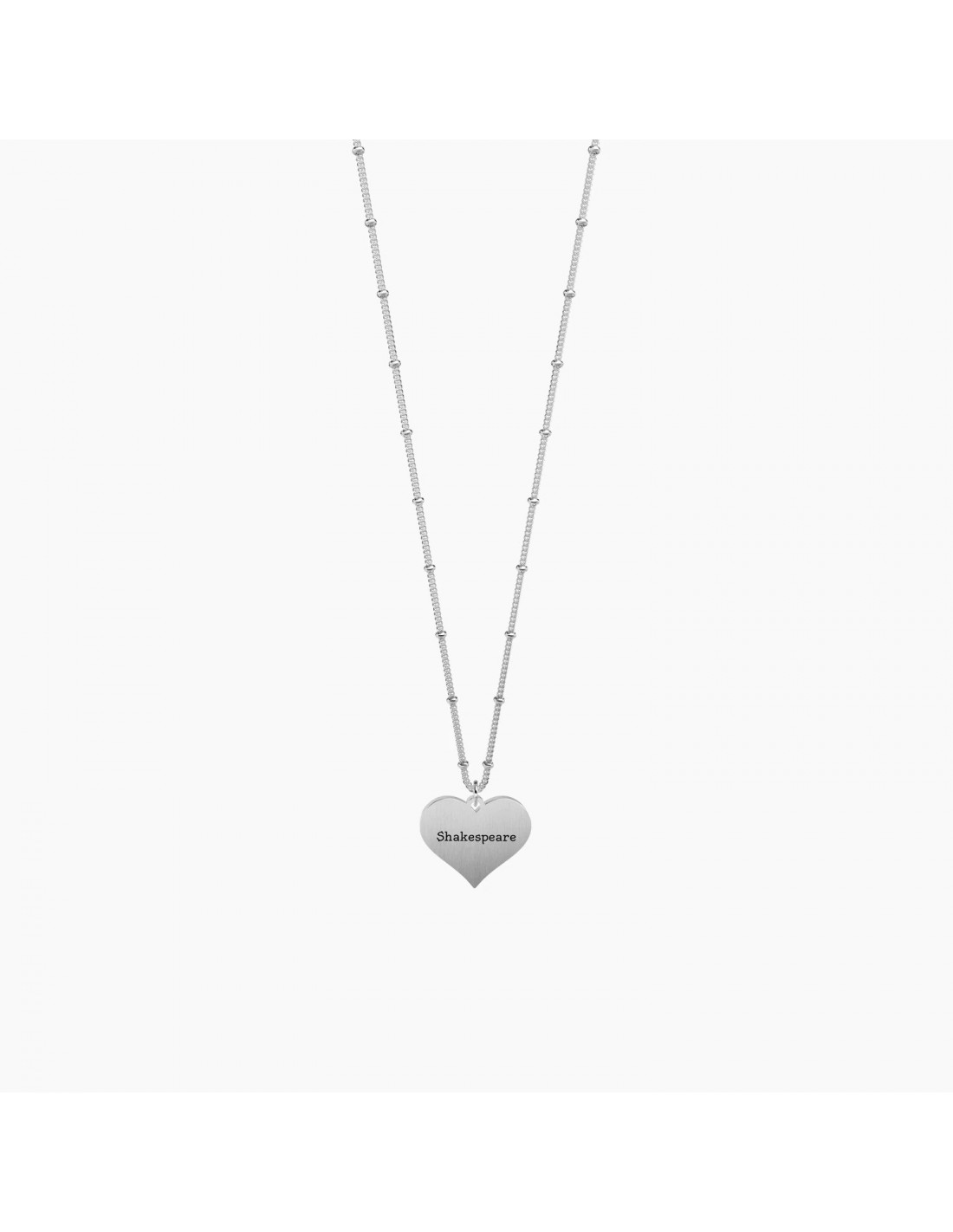Per sempre e un giorno. - Shakespeare - Collana corta in acciaio con ciondolo satinato a cuore con cristalli colorati e catena groumette con anellini.