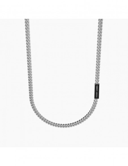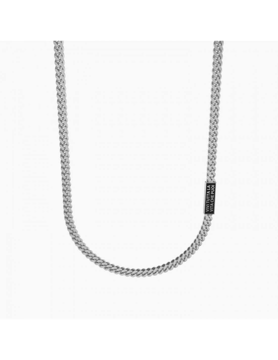 Collana in acciaio satinato con piastra rettangolare di colore nero e catena groumette.