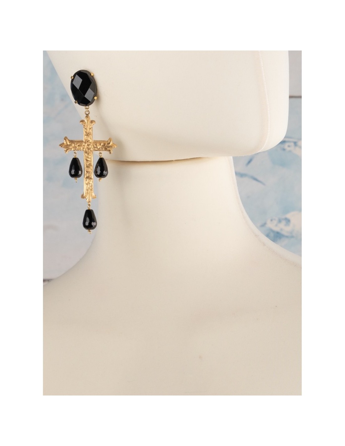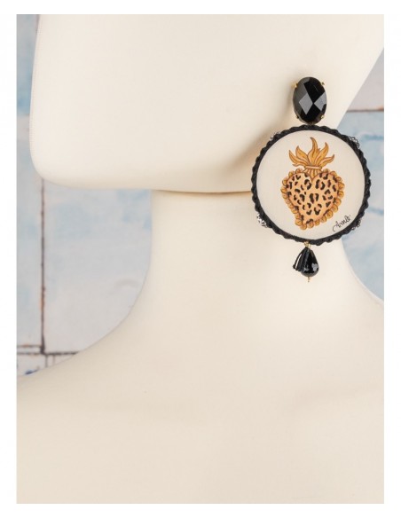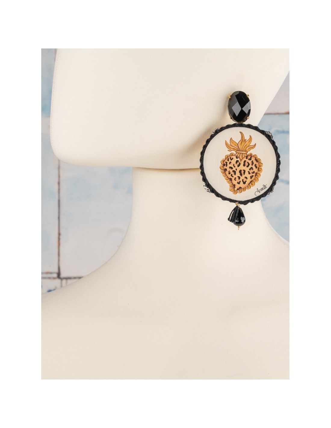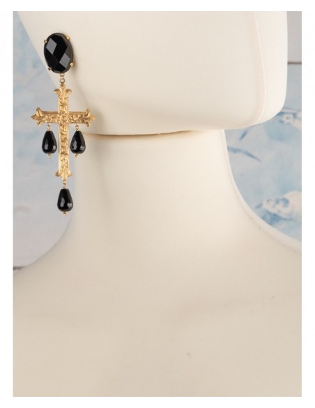 Orecchini Amle in argento con croce e tamburello con pietre naturali realizzati interamente a mano in italia