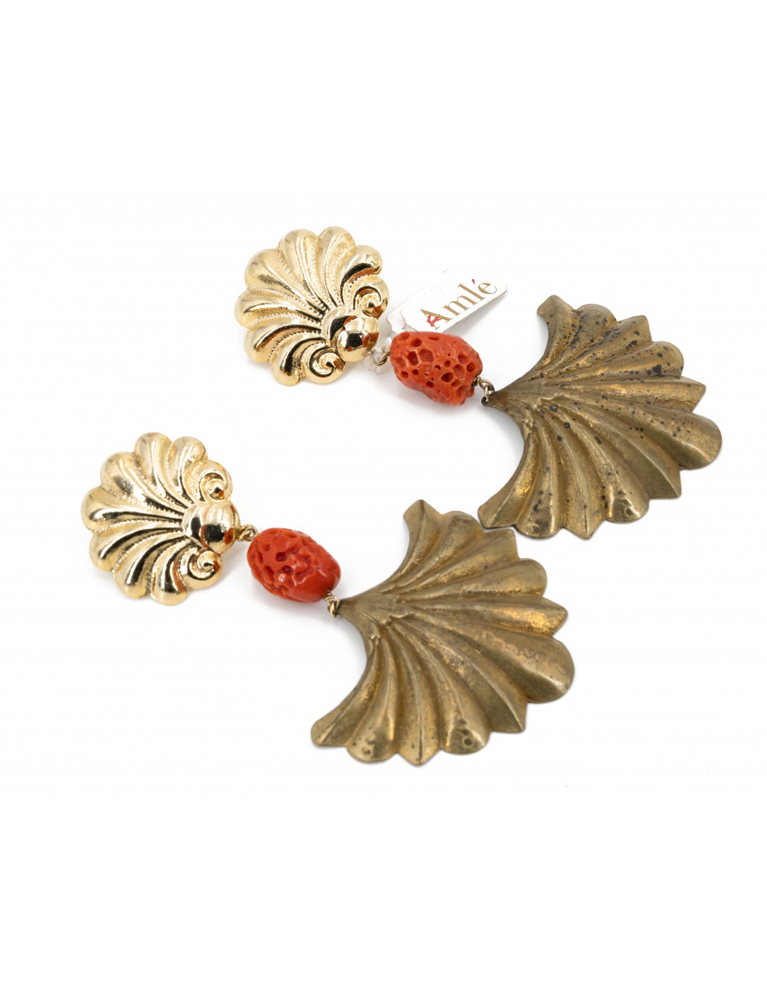 Orecchini Amlè in Argento Dorato e Corallo Rosso