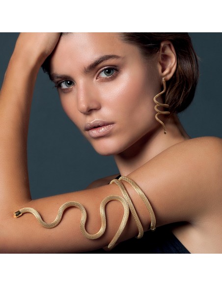 Gli orecchini New Snake sono realizzati in acciaio: leggeri e flessibili, sono caratterizzati da una preziosa maglia metallica in cui scorre un'anima morbida e malleabile, che disegna spire e giochi di luce che illuminano il viso.