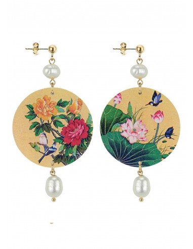 Orecchini Ocra con Fiori e Colibrì Lebole collezione The Circle