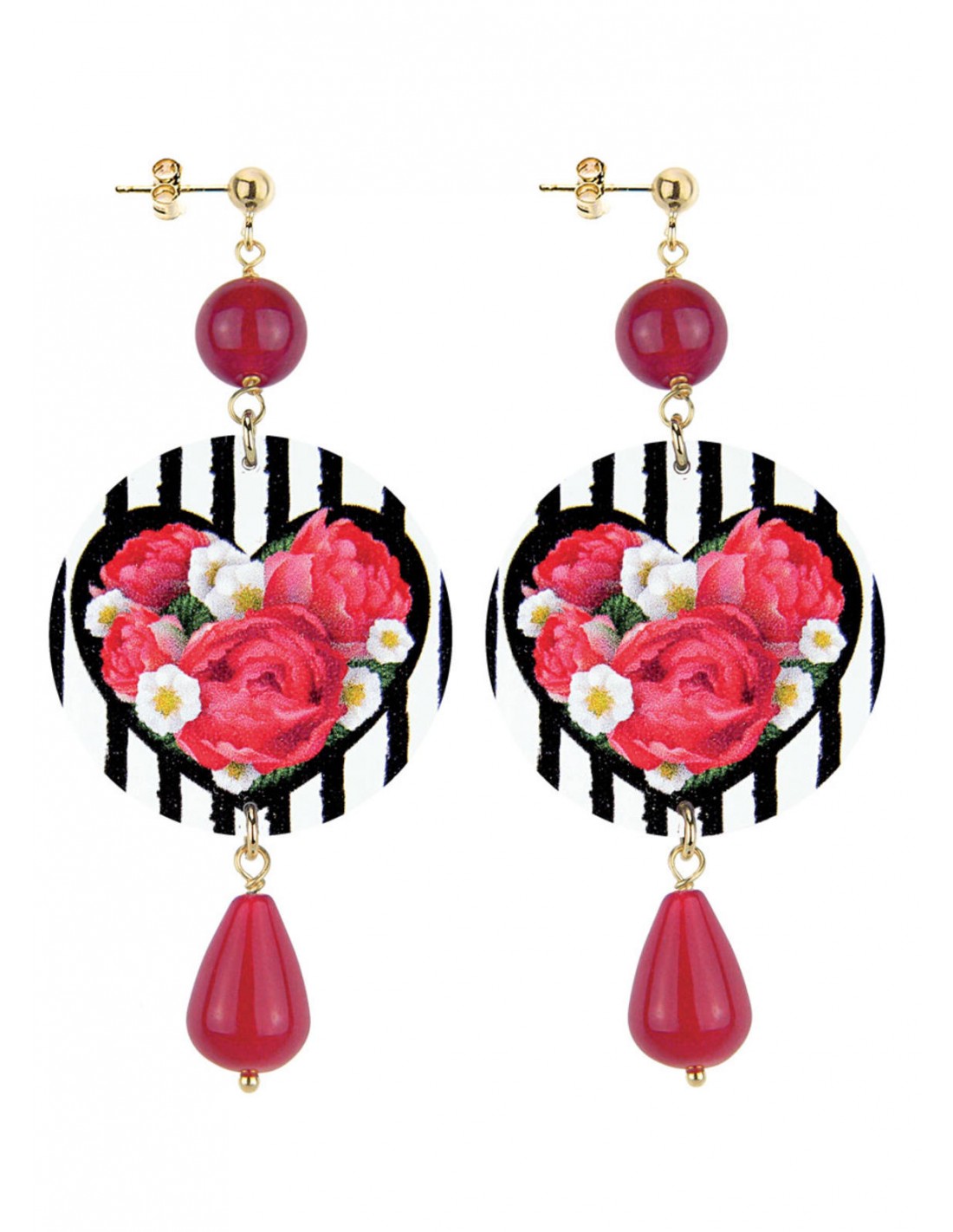 Orecchino Riga Nera con Cuore Rubino Lebole collezione The Circle Flower