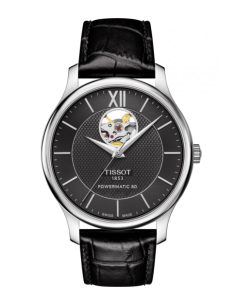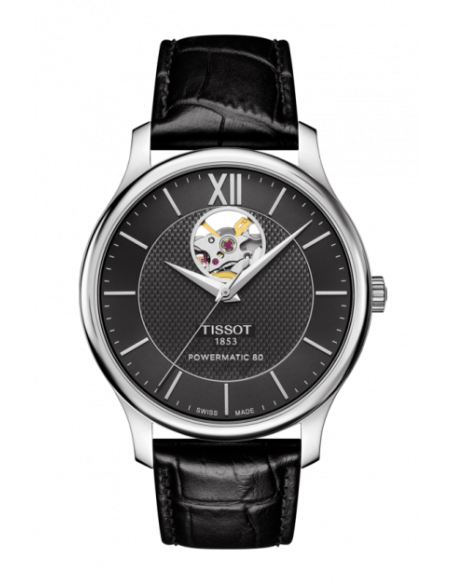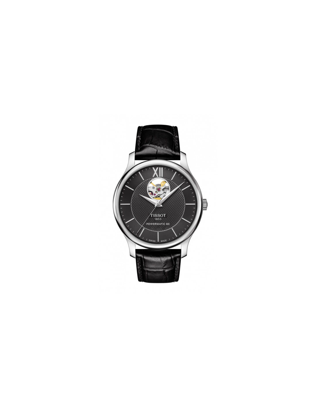 Tissot Tradition Open Heart offre un design raffinato con motivi Guilloché sul quadrante e sofisticati dettagli retrò.