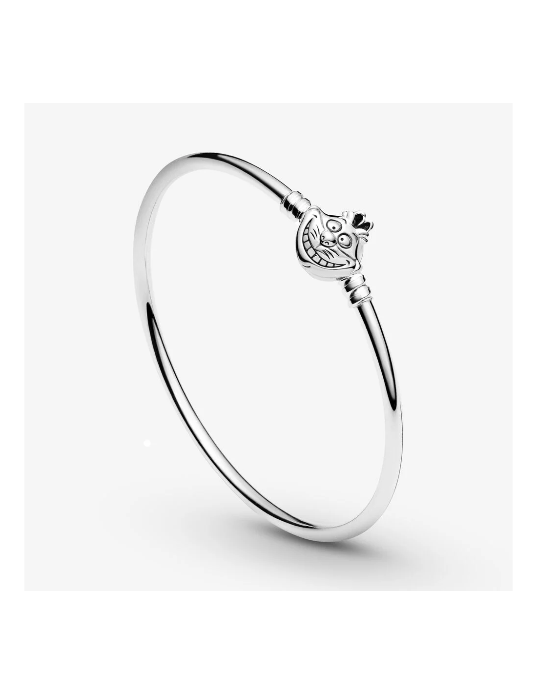 Mantieni sempre viva la tua curiosità con il bracciale rigido Pandora Moments con chiusura che raffigura Stregatto ispirato ad Alice nel paese delle meraviglie Disney.