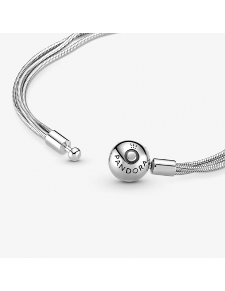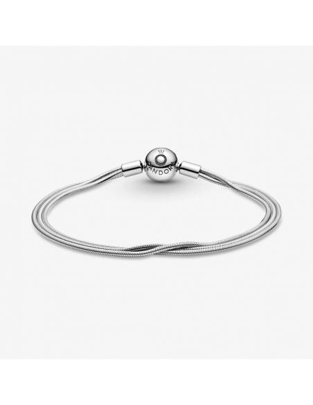 Arricchisci il tuo stile con il bracciale Pandora Moments con maglia multi filo. Rifinito a mano e realizzato in Argento Sterling 925, il bracciale con maglia snake presenta tre sottili maglie snake e una chiusura sferica decorata dagli iconici monogramma e logo Pandora. Arricchisci il gioiello in Argento Sterling 925 con i tuoi charm Pandora Moments preferiti, che possono essere inseriti come su un normale bracciale Pandora Moments. Il bracciale diventerà il tuo nuovo must-have, perfetto per completare qualsiasi look con stile.