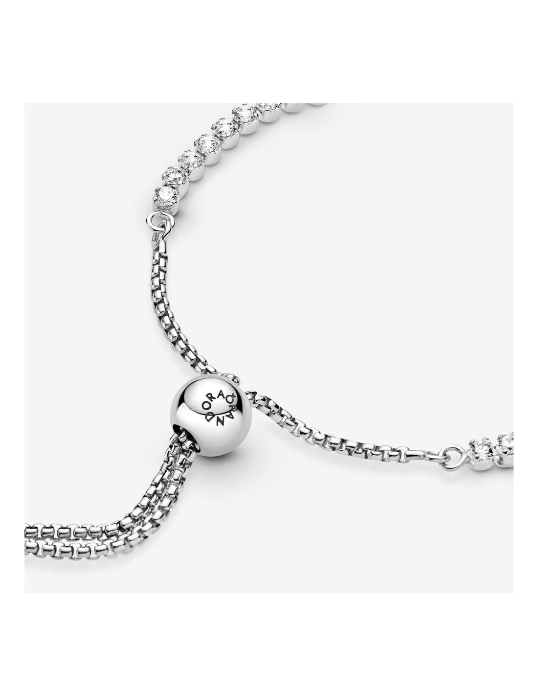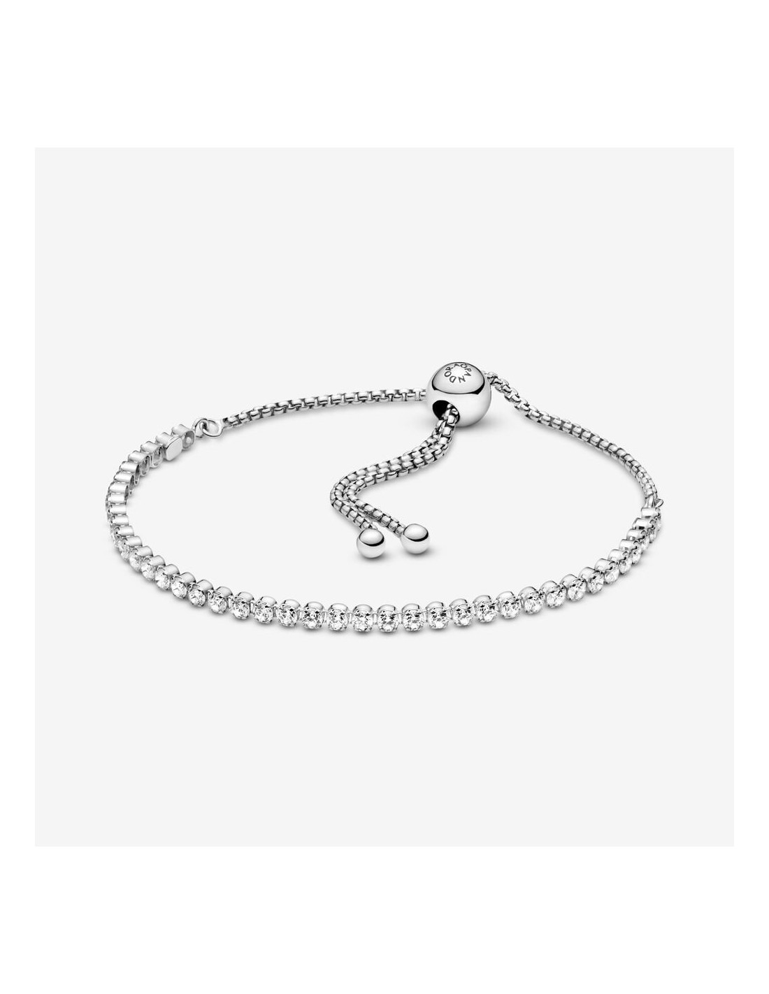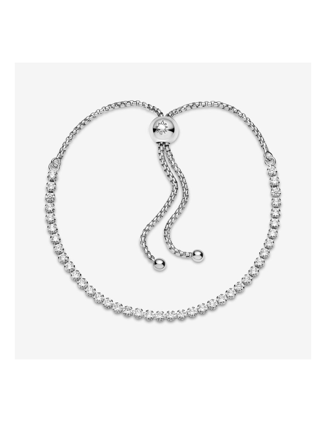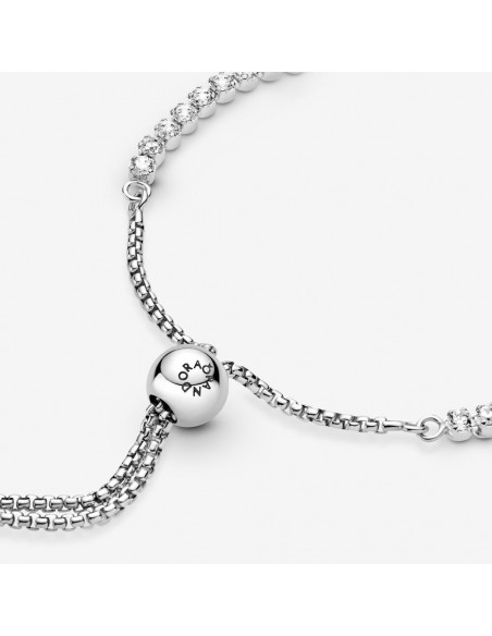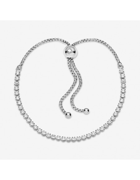 Questo sfavillante bracciale regolabile è irresistibile per qualsiasi donna. Rivisitazione moderna del classico bracciale tennis. L’anello è sapientemente decorato da pietre di zirconia cubica incolori che aggiungono una brillantezza discreta a ogni look e la sua chiusura regolabile consente di adattarlo perfettamente a ogni polso.