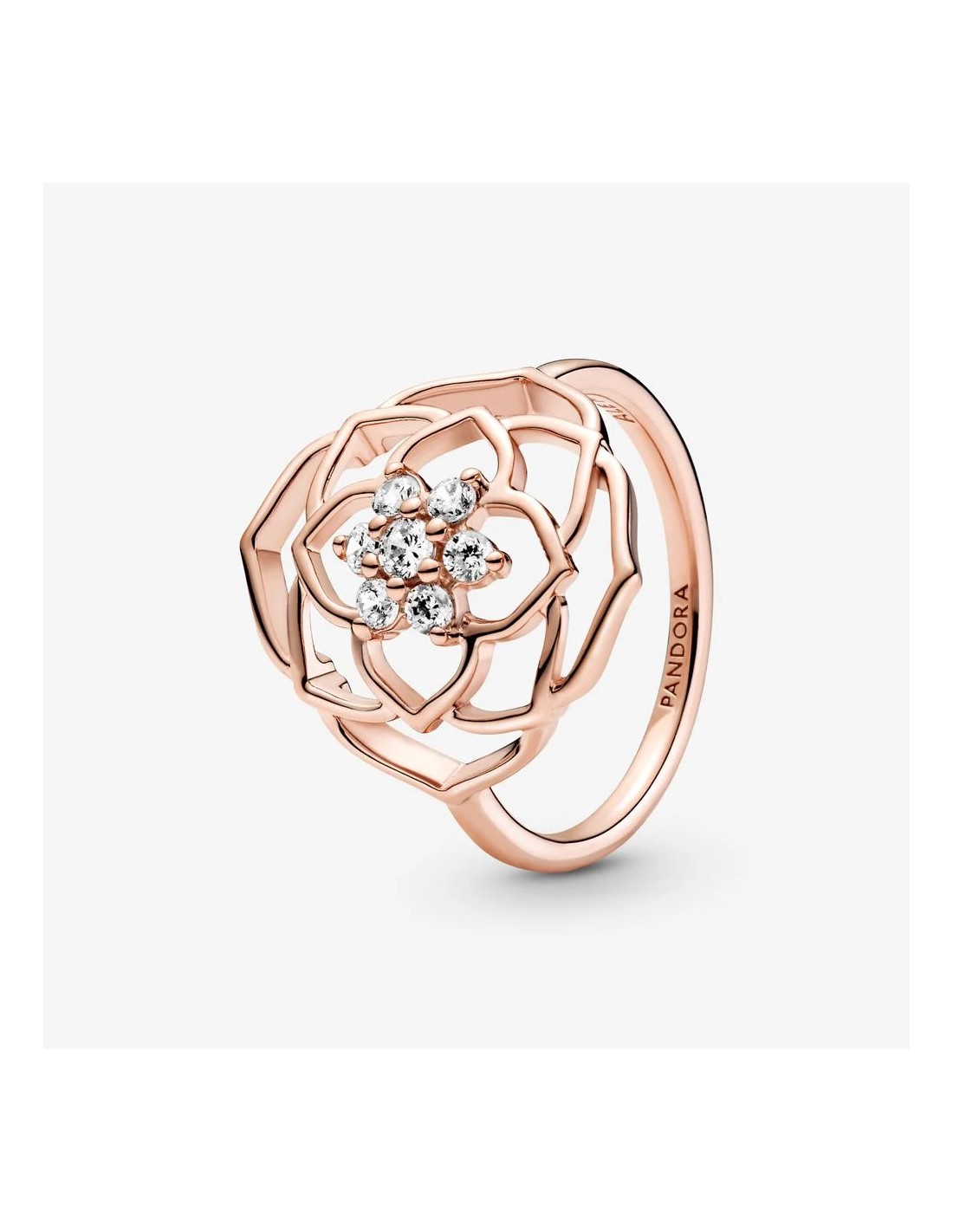 Aggiungi un tocco di brillantezza al tuo look con l’anello scenografico Petali di rosa. Rifinito a mano e realizzato in Pandora Rose (la nostra esclusiva lega metallica con placcatura in Oro 14K), il gioiello presenta il profilo di una grande rosa con lavorazione openwork e petali ricchi di dettagli. Il gambo è sottile e lucido, mentre pietre di zirconia cubica incolori che formano un fiore decorano il centro del motivo della rosa. Combina l’anello con altri gioielli sfavillanti della collezione Pandora Timeless per un look scenografico oppure regalalo a una persona speciale.