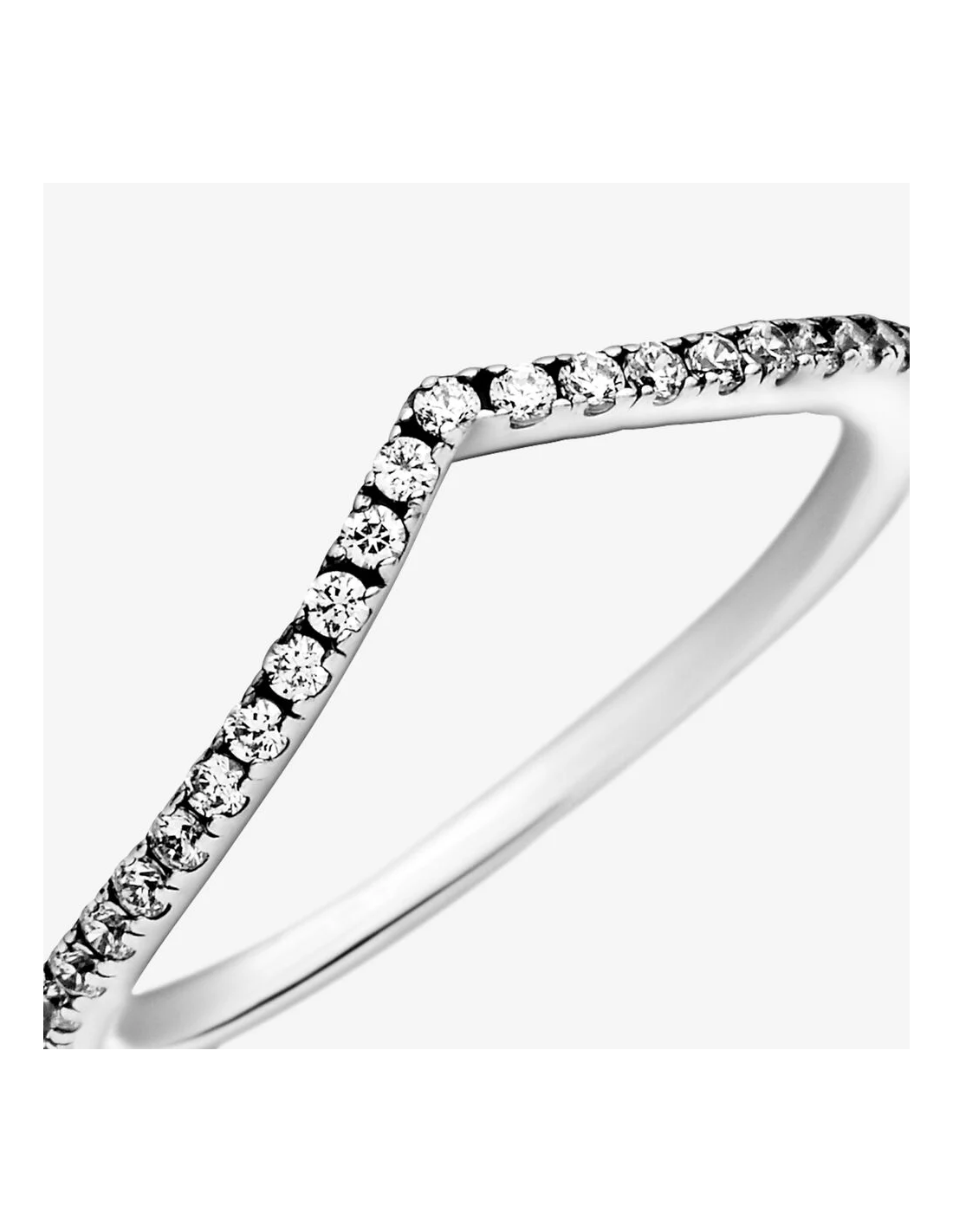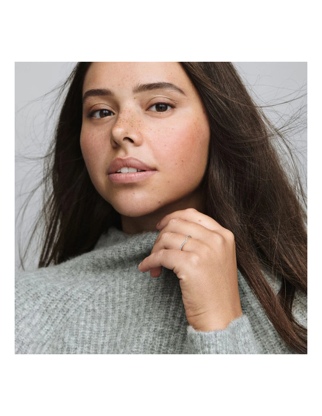 Realizza i tuoi sogni con questo delicato anello Pandora in Argento Sterling 925 impreziosito da una fila di zirconia cubica scintillante. Semplice ma elegante, questo anello a V può essere indossato da solo per un tripudio di brillantezza, o insieme ad altri anelli componibili Pandora per creare un look esclusivo, molto personale.