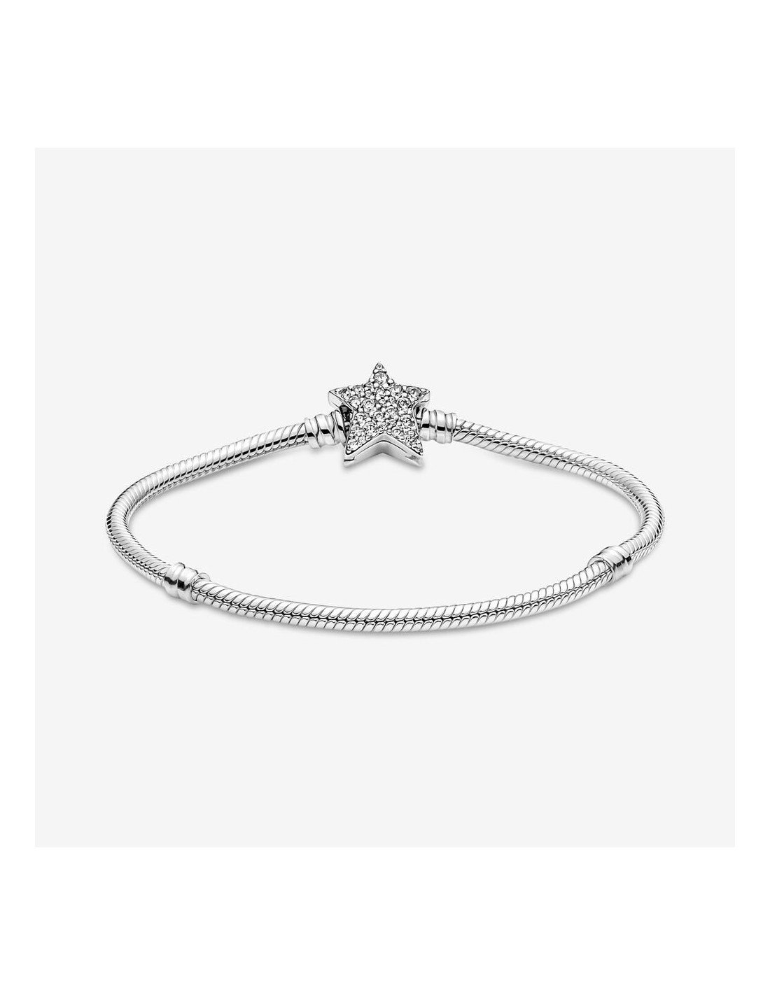 Aggiungi splendore celestiale al tuo look con il bracciale Pandora Moments con maglia snake e chiusura con stella asimmetrica. Rifinito a mano e realizzato in argento sterling 925, il bracciale presenta una chiusura a forma di stella ricoperta da scintillanti pietre di zirconia cubica incolori incastonate a pavé su entrambi i lati. Il gioiello può portare un massimo di 16-18 charm e pendenti. Indossalo da solo per un look semplice e discreto o abbinalo ad altri gioielli ispirati al cosmo per un look ultraterreno.