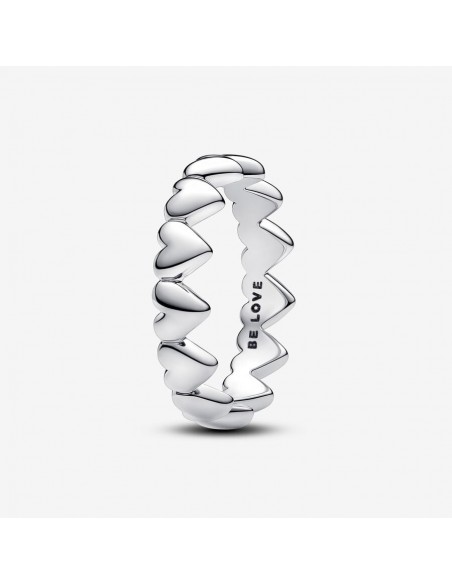 Fai un regalo che viene dal cuore con questo anello in Argento Sterling 925. Decorato con una fila di cuori che compongono la fascia, questo gioiello romantico è bellissimo da solo o abbinato ad altri anelli Pandora a contrasto. Regalalo per esprimere il tuo amore o celebra te stessa con un gioiello che adorerai indossare più e più volte.