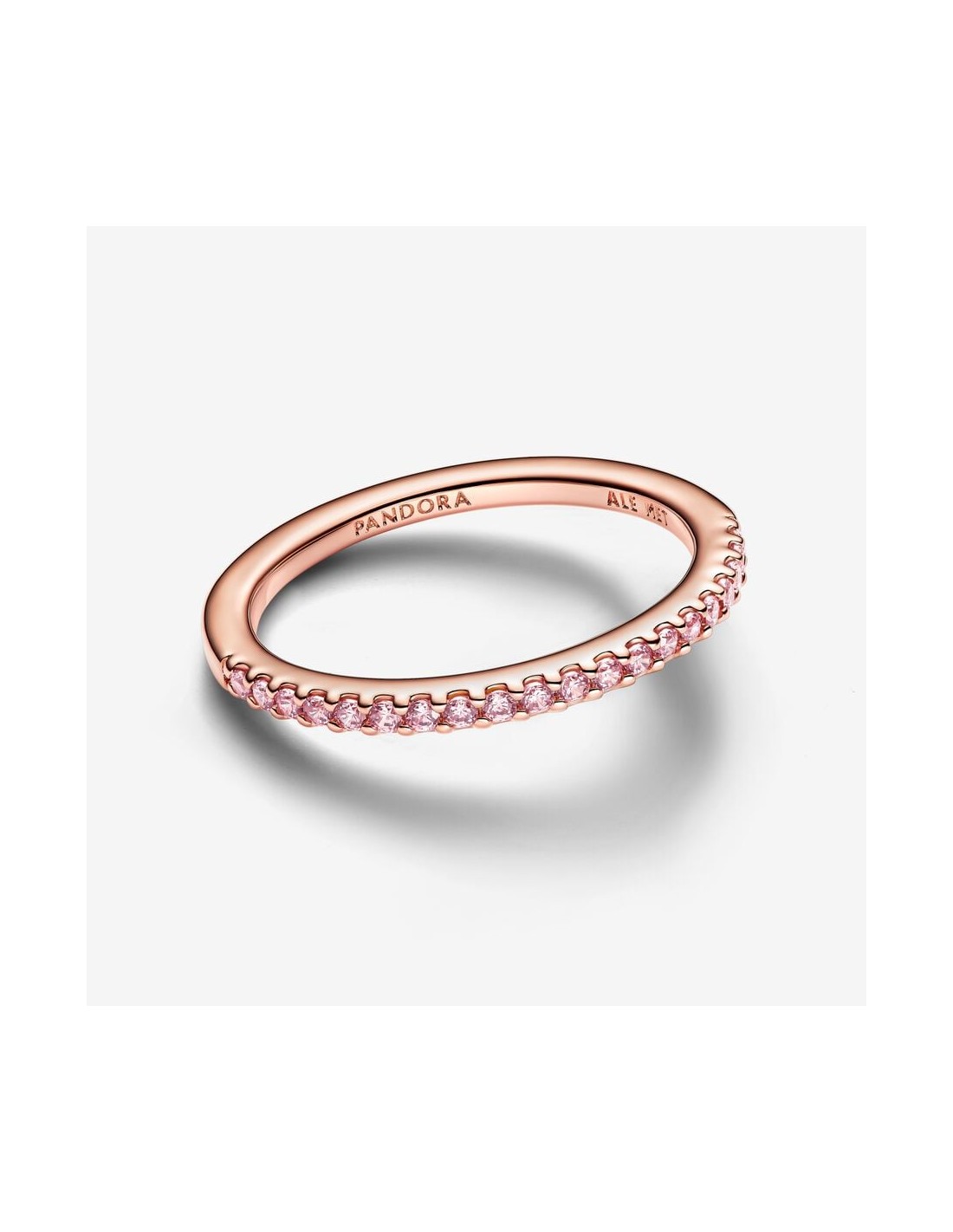 Dona al tuo look un tocco luminoso e delicato con questo Anello Pavè Fascia Sottile. Realizzato con placcatura in Oro Rosa 14k, l'anello è decorato da una fila di pietre di zirconia cubica rosa sull'esterno della metà anteriore. All'interno è inciso l'iconico logo Pandora. Indossalo da solo o con altri gioielli decorati con pavé della collezione Timeless per creare un effetto luminoso.