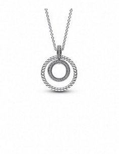 Rifinita a mano e realizzata in Argento Sterling 925, la collana presenta una nuova texture iconica, con una catena sferica a trama borchiata, e una chiusura a cuore apribile decorata con il simbolo dell'infinito.