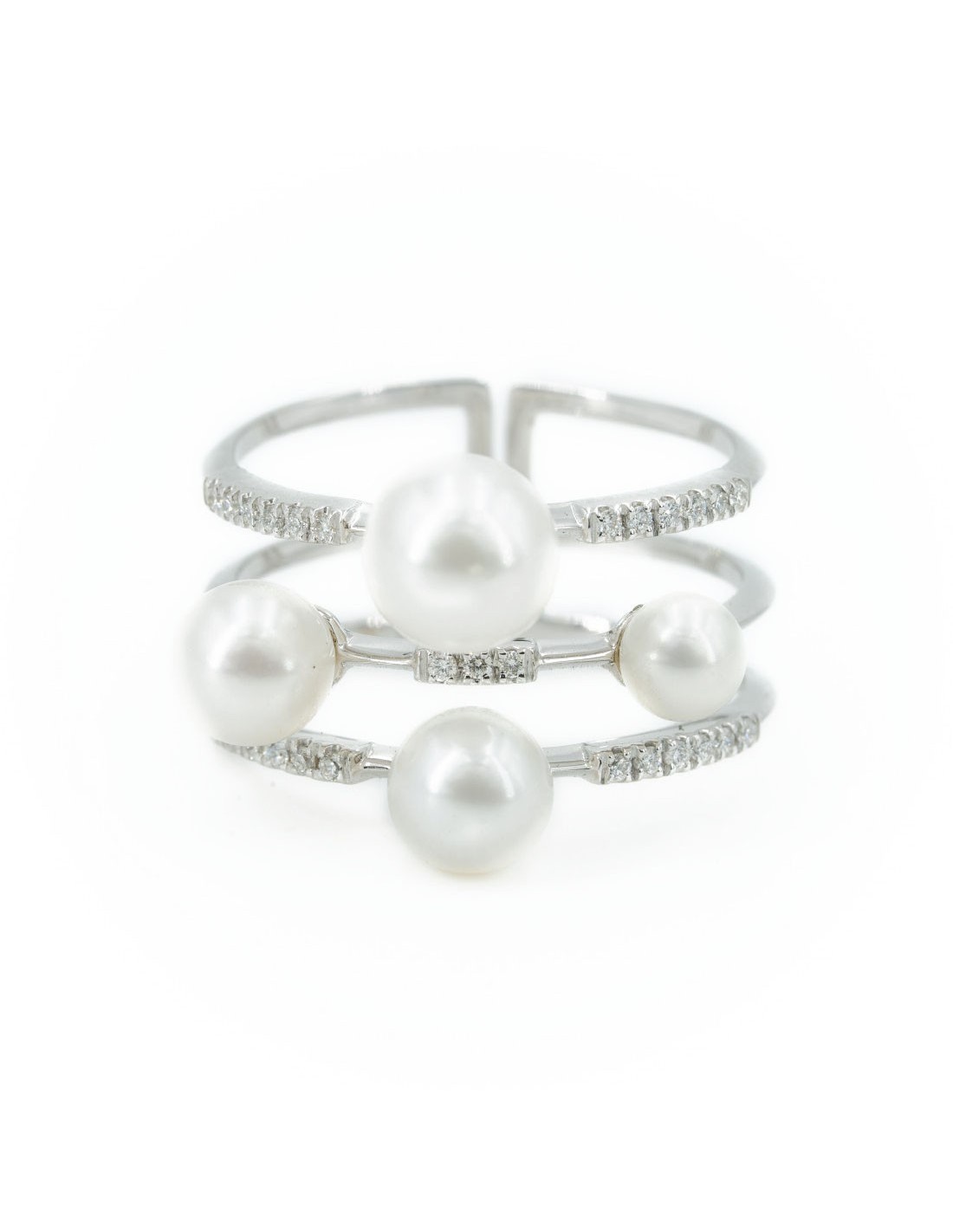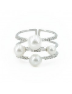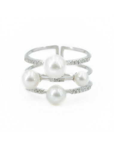 Anello in Oro bianco (750) con 4 Perle e Diamanti