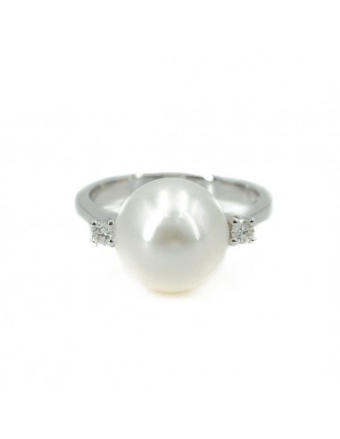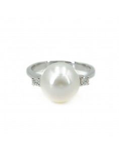 Anello in oro bianco (750) con Perla centrale e 2 Diamanti laterali.